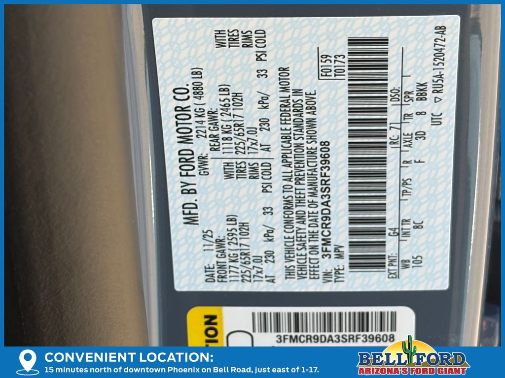 - VIN : 3FMCR9DA3SRF39608