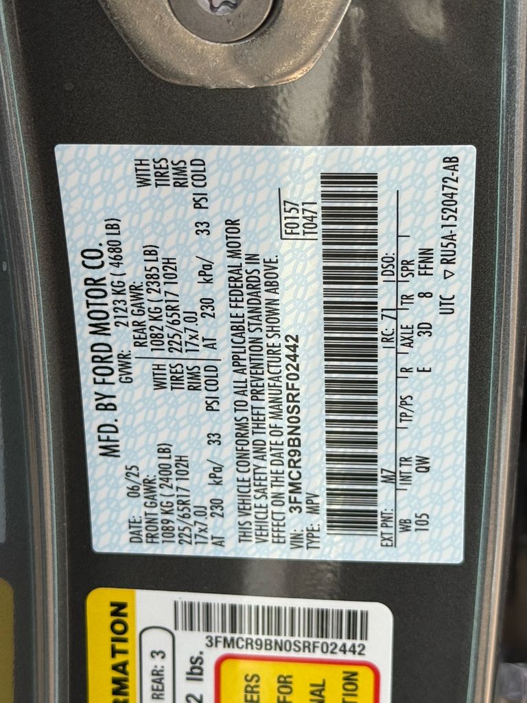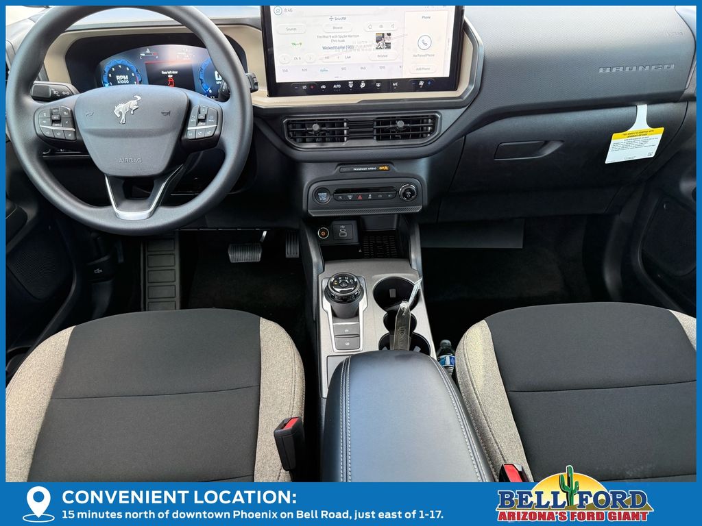 This Ford Bronco Sport is equipped with the following options: Equipment Group 200A, 4-Wheel Disc Brakes, 6 Speakers, ABS brakes, Air Conditioning, Alloy wheels, AM/FM radio: SiriusXM, AM/FM Stereo, Auto High-beam Headlights, Automatic temperature control, Brake assist, Cloth w/Easy-to-Clean Front Bucket Seats, Compass, Delay-off headlights, Driver door bin, Driver vanity mirror, Dual front impact airbags, Dual front side impact airbags, Electronic Stability Control, Emergency communication system: SYNC 4 911 Assist, Four wheel independent suspension, Front anti-roll bar, Front Bucket Seats, Front Center Armrest, Front reading lights, Fully automatic headlights, Heated door mirrors, Illuminated entry, Knee airbag, Low tire pressure warning, Occupant sensing airbag, Outside temperature display, Overhead airbag, Overhead console, Panic alarm, Passenger door bin, Passenger vanity mirror, Power door mirrors, Power steering, Power windows, Radio data system, Rear anti-roll bar, Rear Parking Sensors, Rear reading lights, Rear seat center armrest, Rear window defroster, Rear window wiper, Remote keyless entry, Security system, SiriusXM, Speed control, Speed-sensing steering, Speed-Sensitive Wipers, Split folding rear seat, Steering wheel mounted audio controls, SYNC 4 w/Enhanced Voice Recognition, Tachometer, Telescoping steering wheel, Tilt steering wheel, Traction control, Trip computer, Variably intermittent wipers, and Wheels: 17" Carbonized Gray-Painted Aluminum. Price includes: $2000 - Retail Customer Cash. Exp. 03/31/2026 $500 - Bonus Customer Cash. Exp. 02/02/2026