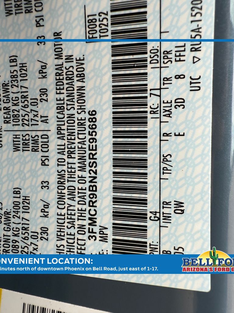 This Ford Bronco Sport is equipped with the following options: Black Diamond Off-Road Package (110V/400W AC Power Outlet, 2nd Row Carpeted Seatback, Auxiliary Switches & Wiring, Brush Guard, Cargo Management System (Shelf/Divider/Table), Cargo Mat, Class II Trailer Tow Pack w/Trailer Sway Control, Fender Tie Downs, Front & Rear Black Bumpers, Interior Grab Handle, Recovery Hooks, and Wheels: 17" Carbonized Gray Painted Aluminum), Convenience Package (Front Driver/Passenger Seat Back Map Pockets, Heated 8-Way Power Driver's Seat, LED Fog Lamps, Premium Wrapped Steering Wheel, and Universal Garage Door Opener (UGDO)), Equipment Group 200A, 4-Wheel Disc Brakes, 6 Speakers, ABS brakes, Air Conditioning, Alloy wheels, AM/FM radio: SiriusXM, AM/FM Stereo, Auto High-beam Headlights, Automatic temperature control, Brake assist, Cloth w/Easy-to-Clean Front Bucket Seats, Compass, Delay-off headlights, Driver door bin, Driver vanity mirror, Dual front impact airbags, Dual front side impact airbags, Electronic Stability Control, Emergency communication system: SYNC 4 911 Assist, Four wheel independent suspension, Front anti-roll bar, Front Bucket Seats, Front Center Armrest, Front reading lights, Fully automatic headlights, Heated door mirrors, Illuminated entry, Knee airbag, Low tire pressure warning, Occupant sensing airbag, Outside temperature display, Overhead airbag, Overhead console, Panic alarm, Passenger door bin, Passenger vanity mirror, Power door mirrors, Power Moonroof, Power steering, Power windows, Radio data system, Rear anti-roll bar, Rear Parking Sensors, Rear reading lights, Rear seat center armrest, Rear window defroster, Rear window wiper, Remote keyless entry, Security system, SiriusXM, Speed control, Speed-sensing steering, Speed-Sensitive Wipers, Split folding rear seat, Steering wheel mounted audio controls, SYNC 4 w/Enhanced Voice Recognition, Tachometer, Telescoping steering wheel, Tilt steering wheel, Traction control, Trip computer, Variably intermittent wipers, and Wheels: 17" Carbonized Gray-Painted Aluminum. Price includes: $1000 - SUV Spike Retail Bonus Cash. Exp. 03/02/2026 $2000 - Retail Customer Cash. Exp. 03/31/2026