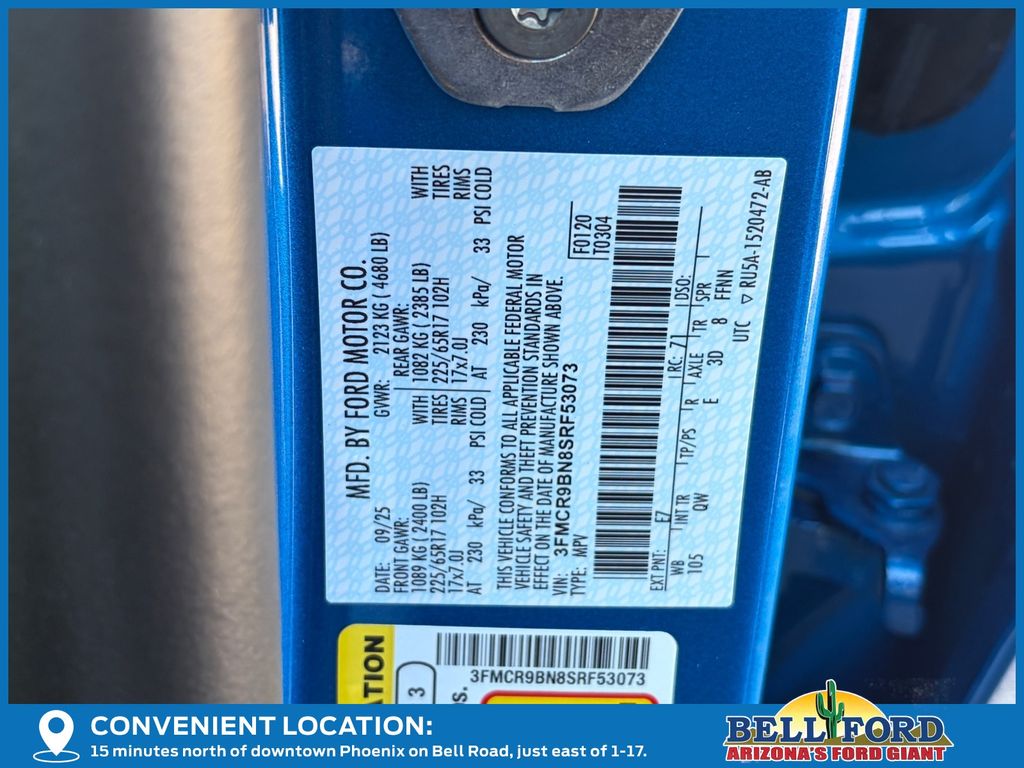 - VIN : 3FMCR9BN8SRF53073