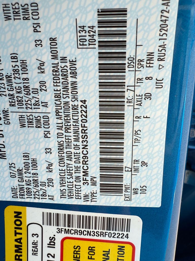 Equipment Group 300A, Outer Banks Tech Package+ (B&O Sound System by Bang & Olufsen, Connected Navigation, and HD Radio), 360-Degree Camera w/Trail & Split View, 4-Wheel Disc Brakes, 6 Speakers, ABS brakes, Air Conditioning, Alloy wheels, AM/FM radio: SiriusXM, AM/FM Stereo, Auto High-beam Headlights, Auto-dimming Rear-View mirror, Automatic temperature control, Brake assist, Compass, Delay-off headlights, Driver door bin, Driver vanity mirror, Dual front impact airbags, Dual front side impact airbags, Electronic Stability Control, Emergency communication system: SYNC 4 911 Assist, Four wheel independent suspension, Front anti-roll bar, Front Bucket Seats, Front Center Armrest, Front Driver/Passenger Seat Back Map Pockets, Front dual zone A/C, Front fog lights, Front Parking Sensors, Front reading lights, Fully automatic headlights, Garage door transmitter, Heated door mirrors, Heated front seats, Heated steering wheel, Illuminated entry, Knee airbag, Low tire pressure warning, Memory seat, Occupant sensing airbag, Outside temperature display, Overhead airbag, Overhead console, Panic alarm, Passenger door bin, Passenger vanity mirror, Power door mirrors, Power driver seat, Power passenger seat, Power steering, Power windows, Premium Trimmed Front Bucket Seats w/Ebony/Roast, Radio data system, Rain sensing wipers, Rear anti-roll bar, Rear Parking Sensors, Rear reading lights, Rear seat center armrest, Rear window defroster, Rear window wiper, Remote keyless entry, Reverse Brake Assist, Security system, SiriusXM, Speed control, Speed-sensing steering, Speed-Sensitive Wipers, Split folding rear seat, Steering wheel mounted audio controls, SYNC 4 w/Enhanced Voice Recognition, Tachometer, Telescoping steering wheel, Tilt steering wheel, Traction control, Trip computer, Variably intermittent wipers, and Wheels: 18" Ebony Black-Painted Aluminum. Price includes: $1000 - Bonus Customer Cash. Exp. 01/05/2026 $500 - Retail Bonus Cash. Exp. 01/05/2026