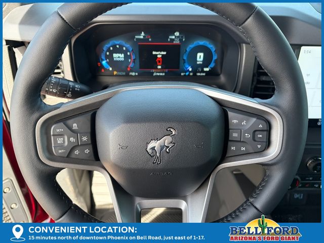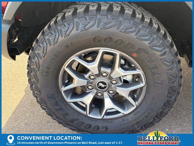 Equipment Group 334A Lux Package (2-Door Intelligent Access w/Lock/Unlock, 360-Degree Camera, Adaptive Cruise Control, Ambient Footwell Lighting, Connected Navigation, Dr & Pass Illuminated Sliding Visor Vanity Mirrors, Dual Smart Charging USB Ports, Dual-Zone Electronic Automatic Temperature Control, Evasive Steering Assist, Front Parking Sensors, Front Row Heated Seats, Information on Demand Panel, Power Outlet - Back Side of Center Floor Console, Radio: B&O Sound System by Bang & Olufsen, Rear Parking Sensors, Sideview Mirrors, and Universal Garage Door Opener), 4-Wheel Disc Brakes, 4.7 Axle Ratio, 7 Speakers, ABS brakes, Air Conditioning, Alloy wheels, AM/FM radio: SiriusXM with 360L, AM/FM Stereo, Auto High-Beam Headlamps, Auto High-beam Headlights, Auto-dimming Rear-View mirror, BLIS Blind Spot Information System, Brake assist, Compass, Convertible HardTop, Convertible roof lining, Delay-off headlights, Door Storage Bags, Driver door bin, Driver vanity mirror, Dual front impact airbags, Dual front side impact airbags, Electronic Stability Control, Emergency communication system: 911 Assist, Exterior Parking Camera Rear, Front anti-roll bar, Front Bucket Seats, Front Center Armrest, Front fog lights, Front reading lights, Front wheel independent suspension, Fully automatic headlights, Glass rear window, Heated door mirrors, Heated steering wheel, Illuminated entry, Integrated roll-over protection, Lane-Keeping System, Leather Shift Knob, Low tire pressure warning, Marine Grade Vinyl Heated Bucket Seats, Occupant sensing airbag, Outside temperature display, Overhead airbag, Overhead console, Panic alarm, Passenger door bin, Passenger vanity mirror, Power door mirrors, Power steering, Power windows, Pre-Collision Assist w/Automatic Emergency Braking, Radio data system, Raptor-Style Running Board, Rear window defroster, Rear window wiper, Rear-View Camera, Remote keyless entry, Security system, SiriusXM w/360L, Speed control, Split folding rear seat, Steering wheel mounted audio controls, SYNC 4, Tachometer, Telescoping steering wheel, Tilt steering wheel, Traction control, Trip computer, Variably intermittent wipers, Voltmeter, and Wheels: 17" Carbonized Gray-Painted Aluminum. Price includes: $1000 - Bonus Customer Cash. Exp. 01/05/2026 $1000 - Retail Bonus Cash. Exp. 10/31/2025