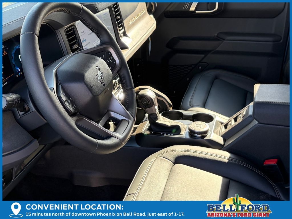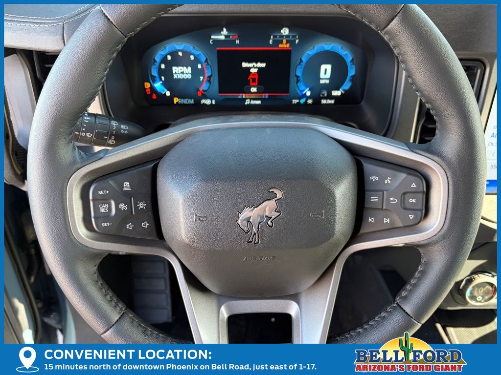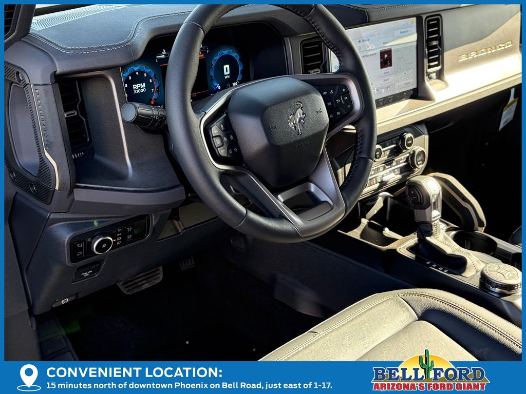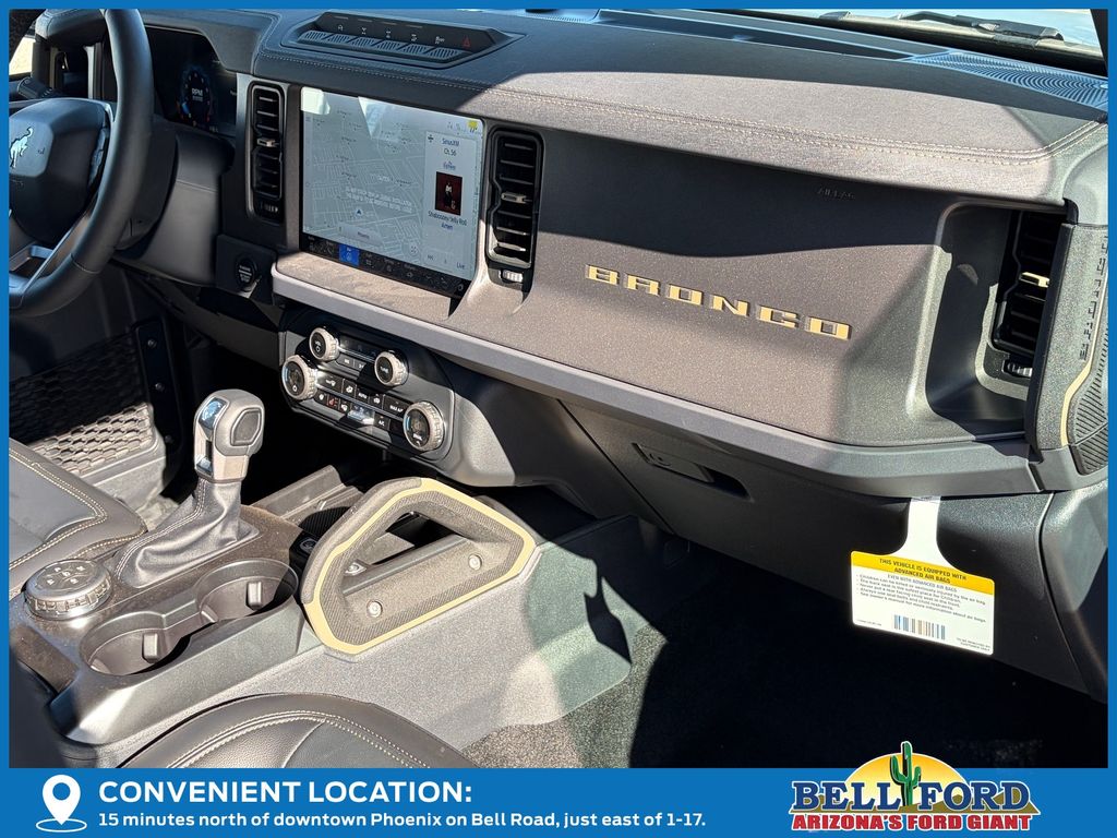 This Ford Bronco is equipped with the following options: Black Appearance Package (Black Molded-In-Color Door Handles, Black Molded-In-Color Fender Flares, Black Molded-In-Color Sideview Mirror Caps, and Black-Painted Molded-In-Color Grille), Equipment Group 334A Lux Package (2-Door Intelligent Access w/Lock/Unlock, 360-Degree Camera, Adaptive Cruise Control, Ambient Footwell Lighting, Connected Navigation, Dr & Pass Illuminated Sliding Visor Vanity Mirrors, Dual Smart Charging USB Ports, Dual-Zone Electronic Automatic Temperature Control, Evasive Steering Assist, Front Parking Sensors, Front Row Heated Seats, Information on Demand Panel, Power Outlet - Back Side of Center Floor Console, Radio: B&O Sound System by Bang & Olufsen, Rear Parking Sensors, Sideview Mirrors, and Universal Garage Door Opener), Sasquatch Package (High Clearance Fender Flares, High Clearance Suspension, Position-Sensitive Bilstein Shock Absorbers, and Wheels: 17" Carbonized Gray Painted Aluminum), 4-Wheel Disc Brakes, 7 Speakers, ABS brakes, Air Conditioning, Alloy wheels, AM/FM radio: SiriusXM with 360L, AM/FM Stereo, Auto High-Beam Headlamps, Auto High-beam Headlights, Auto-dimming Rear-View mirror, BLIS Blind Spot Information System, Brake assist, Compass, Delay-off headlights, Driver door bin, Driver vanity mirror, Dual front impact airbags, Dual front side impact airbags, Electronic Stability Control, Emergency communication system: 911 Assist, Exterior Parking Camera Rear, Front anti-roll bar, Front Bucket Seats, Front Center Armrest, Front fog lights, Front reading lights, Front wheel independent suspension, Fully automatic headlights, Hard Top Sound Deadening Headliner, Heated door mirrors, Heated front seats, Heated steering wheel, HOSS 3.0 w/FOX Internal Bypass Dampers, Illuminated entry, Integrated roll-over protection, Internet access capable: FordPass Connect, Lane-Keeping System, Leather Shift Knob, Low tire pressure warning, Marine Grade Vinyl Heated Bucket Seats, Occupant sensing airbag, Outside temperature display, Overhead airbag, Overhead console, Panic alarm, Passenger door bin, Passenger vanity mirror, Power door mirrors, Power steering, Power windows, Pre-Collision Assist w/Automatic Emergency Braking, Radio data system, Rear-View Camera, Rear-Window Defroster & Washer, Remote keyless entry, Security system, Shadow Black Painted Hard Top, SiriusXM w/360L, Speed control, Split folding rear seat, Steering wheel mounted audio controls, SYNC 4, Tachometer, Telescoping steering wheel, Tilt steering wheel, Traction control, Trip computer, Variably intermittent wipers, Voltmeter, and Wheels: 17" Carbonized Gray-Painted Aluminum. Price includes: $1000 - Bonus Customer Cash. Exp. 01/05/2026 $1000 - Final Days Mega Bonus Cash. Exp. 01/02/2026 $1000 - Retail Bonus Cash. Exp. 01/05/2026