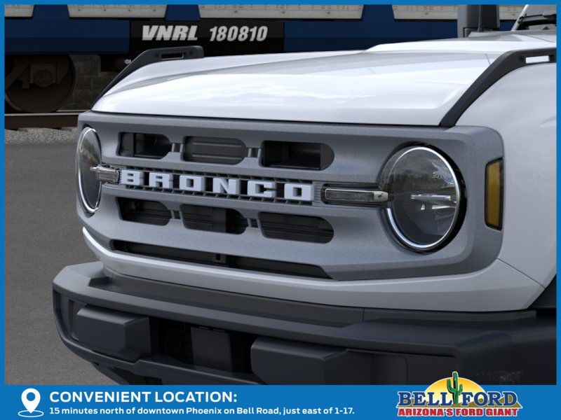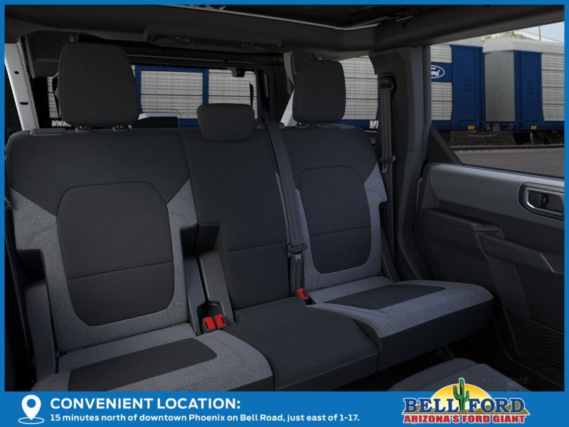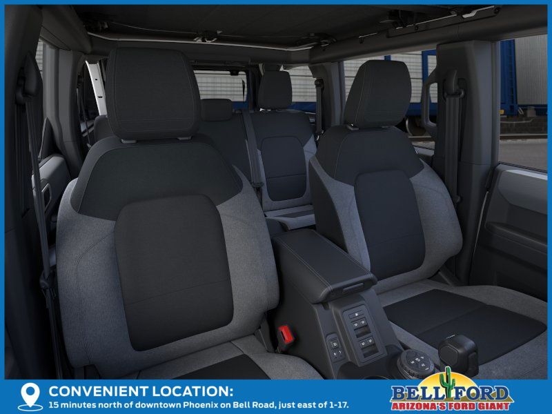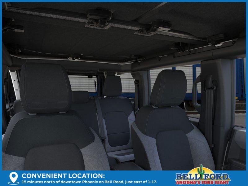 This Ford Bronco is equipped with the following options: Equipment Group 222A Mid Package (2-Door Intelligent Access w/Lock/Unlock, Ambient Footwell Lighting, Connected Navigation, Dr & Pass Illuminated Sliding Visor Vanity Mirrors, Dual Smart Charging USB Ports, Dual-Zone Electronic Automatic Temperature Control, Front Row Heated Seats, Power Outlet - Back Side of Center Floor Console, and Rear Parking Sensors), Trailer Tow Package (DIO), 4-Wheel Disc Brakes, 4.46 Axle Ratio, 7 Speakers, ABS brakes, Air Conditioning, Alloy wheels, AM/FM radio: SiriusXM with 360L, AM/FM Stereo, Auto High-Beam Headlamps, Auto High-beam Headlights, BLIS Blind Spot Information System, Brake assist, Carbonized Gray Molded-In-Color Hard Top, Cloth Bucket Seats, Compass, Delay-off headlights, Driver door bin, Driver vanity mirror, Dual front impact airbags, Dual front side impact airbags, Electronic Stability Control, Emergency communication system: 911 Assist, Exterior Parking Camera Rear, First Aid Kit, Front anti-roll bar, Front Bucket Seats, Front Center Armrest, Front reading lights, Front wheel independent suspension, Fully automatic headlights, Hard Top Sound Deadening Headliner, Heated door mirrors, Illuminated entry, Integrated roll-over protection, Internet access capable: FordPass Connect, Lane-Keeping System, Leather Shift Knob, Low tire pressure warning, Occupant sensing airbag, Outside temperature display, Overhead airbag, Overhead console, Panic alarm, Passenger door bin, Passenger vanity mirror, Power door mirrors, Power steering, Power windows, Pre-Collision Assist w/Automatic Emergency Braking, Radio data system, Rear-View Camera, Rear-Window Defroster & Washer, Remote keyless entry, Security system, SiriusXM w/360L, Speed control, Split folding rear seat, Steering wheel mounted audio controls, SYNC 4, Tachometer, Telescoping steering wheel, Tilt steering wheel, Traction control, Trip computer, Variably intermittent wipers, and Wheels: 17" Carbonized Gray-Painted Aluminum. Price includes: $1000 - Bonus Customer Cash. Exp. 01/05/2026 $1000 - Final Days Mega Bonus Cash. Exp. 01/02/2026 $1000 - Retail Bonus Cash. Exp. 01/05/2026