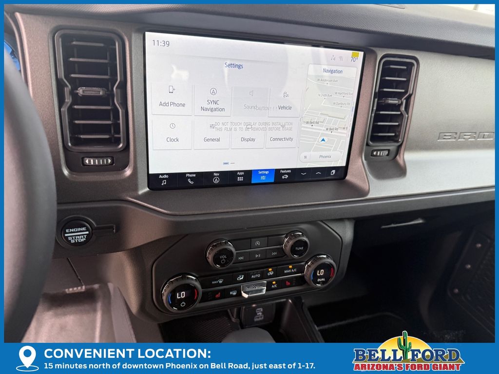 This Ford Bronco is equipped with the following options: Equipment Group 222A Mid Package (2-Door Intelligent Access w/Lock/Unlock, Ambient Footwell Lighting, Connected Navigation, Dr & Pass Illuminated Sliding Visor Vanity Mirrors, Dual Smart Charging USB Ports, Dual-Zone Electronic Automatic Temperature Control, Front Row Heated Seats, Power Outlet - Back Side of Center Floor Console, and Rear Parking Sensors), 4-Wheel Disc Brakes, 4.46 Axle Ratio, 7 Speakers, ABS brakes, Air Conditioning, Alloy wheels, AM/FM radio: SiriusXM with 360L, AM/FM Stereo, Auto High-Beam Headlamps, Auto High-beam Headlights, BLIS Blind Spot Information System, Brake assist, Carbonized Gray Molded-In-Color Hard Top, Cloth Bucket Seats, Compass, Delay-off headlights, Driver door bin, Driver vanity mirror, Dual front impact airbags, Dual front side impact airbags, Electronic Stability Control, Emergency communication system: 911 Assist, Exterior Parking Camera Rear, First Aid Kit, Front anti-roll bar, Front Bucket Seats, Front Center Armrest, Front reading lights, Front wheel independent suspension, Fully automatic headlights, Hard Top Sound Deadening Headliner, Heated door mirrors, Illuminated entry, Integrated roll-over protection, Internet access capable: FordPass Connect, Lane-Keeping System, Leather Shift Knob, Low tire pressure warning, Occupant sensing airbag, Outside temperature display, Overhead airbag, Overhead console, Panic alarm, Passenger door bin, Passenger vanity mirror, Power door mirrors, Power steering, Power windows, Pre-Collision Assist w/Automatic Emergency Braking, Radio data system, Rear-View Camera, Rear-Window Defroster & Washer, Remote keyless entry, Security system, SiriusXM w/360L, Speed control, Split folding rear seat, Steering wheel mounted audio controls, SYNC 4, Tachometer, Telescoping steering wheel, Tilt steering wheel, Traction control, Trip computer, Variably intermittent wipers, and Wheels: 17" Carbonized Gray-Painted Aluminum. Price includes: $2500 - Retail Customer Cash. Exp. 03/31/2026