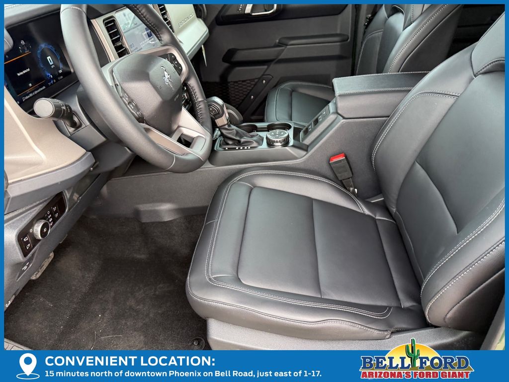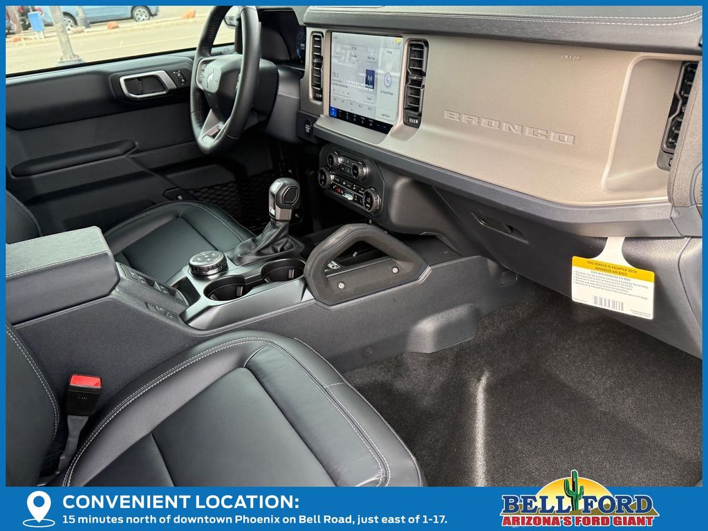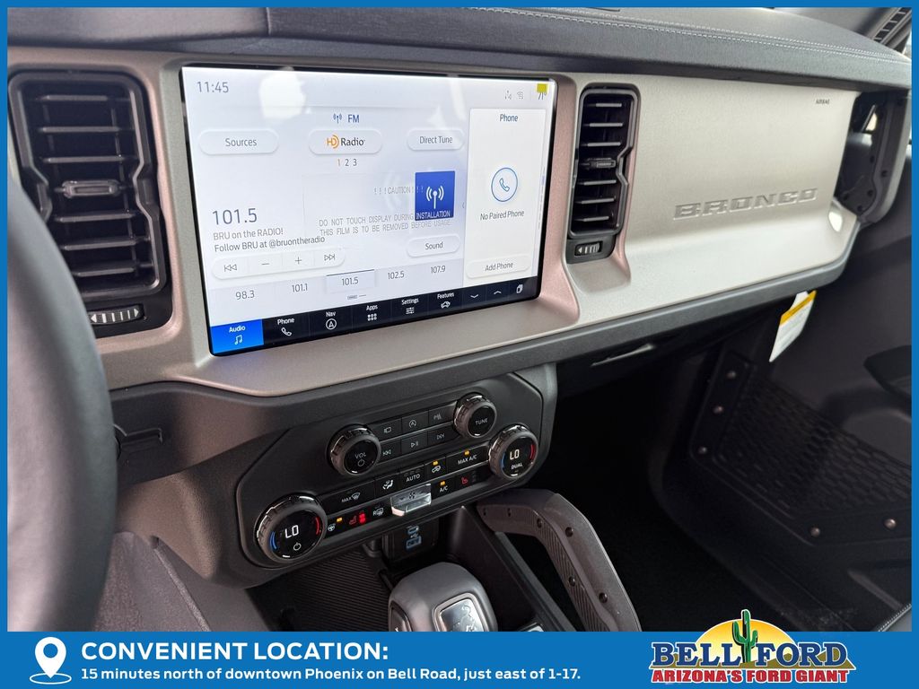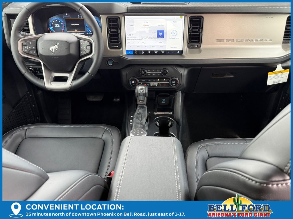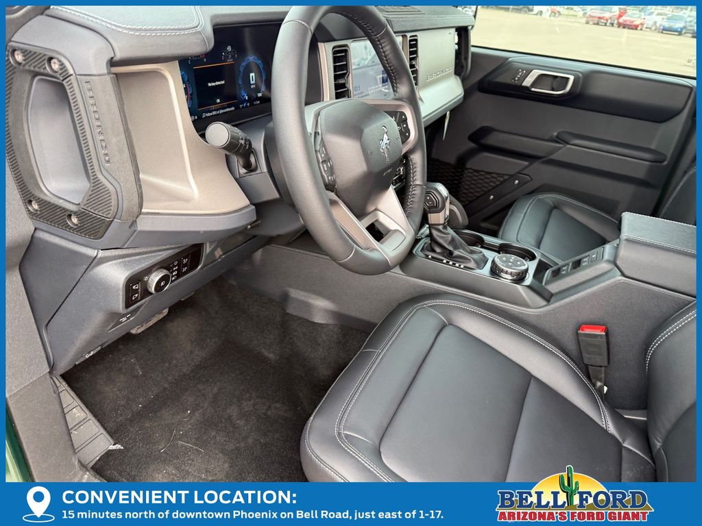 This Ford Bronco is equipped with the following options: Equipment Group 314A Lux Package (360-Degree Camera, Adaptive Cruise Control, Evasive Steering Assist, Front Parking Sensors, Information on Demand Panel, Radio: B&O Sound System by Bang & Olufsen, Sideview Mirrors, and Universal Garage Door Opener), Sasquatch Package (High Clearance Fender Flares, High Clearance Suspension, Position-Sensitive Bilstein Shock Absorbers, and Wheels: 17" Carbonized Gray Painted Aluminum), 18" Bright Machined Aluminum Wheels, 4-Wheel Disc Brakes, 7 Speakers, ABS brakes, Air Conditioning, Alloy wheels, AM/FM radio: SiriusXM with 360L, AM/FM Stereo, Auto High-beam Headlights, Auto-dimming Rear-View mirror, Automatic temperature control, Brake assist, Carbonized Gray Molded-In-Color Hard Top, Compass, Connected Navigation, Delay-off headlights, Driver door bin, Driver vanity mirror, Dual front impact airbags, Dual front side impact airbags, Electronic Stability Control, Emergency communication system: 911 Assist, Exterior Parking Camera Rear, First Aid Kit, Front anti-roll bar, Front Bucket Seats, Front Center Armrest, Front dual zone A/C, Front fog lights, Front reading lights, Front wheel independent suspension, Fully automatic headlights, Hard Top Sound Deadening Headliner, Heated door mirrors, Heated front seats, Heated Leather-Trimmed/Vinyl Bucket Seats, Heated steering wheel, Illuminated entry, Integrated roll-over protection, Internet access capable: FordPass Connect, Leather Shift Knob, Low tire pressure warning, Navigation system: Connected Navigation, Occupant sensing airbag, Outside temperature display, Overhead airbag, Overhead console, Panic alarm, Passenger door bin, Passenger vanity mirror, Power door mirrors, Power driver seat, Power passenger seat, Power steering, Power windows, Radio data system, Rear seat center armrest, Rear-Window Defroster & Washer, Remote keyless entry, Security system, SiriusXM w/360L, Speed control, Split folding rear seat, Steering wheel mounted audio controls, SYNC 4, Tachometer, Telescoping steering wheel, Tilt steering wheel, Traction control, Trip computer, Variably intermittent wipers, and Voltmeter. Price includes: $2500 - Retail Customer Cash. Exp. 03/31/2026