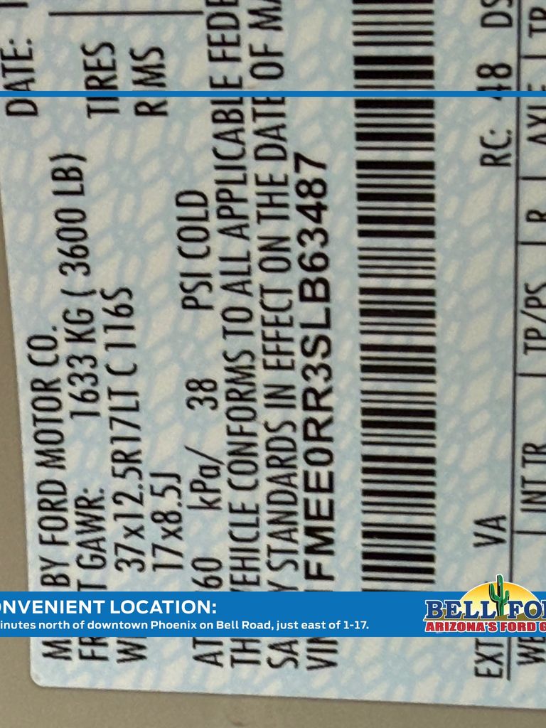 - VIN : 1FMEE0RR3SLB63487