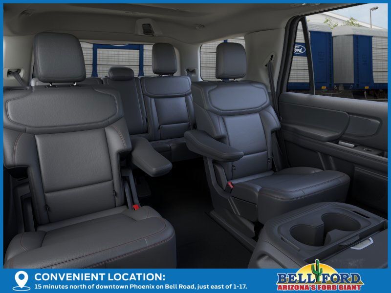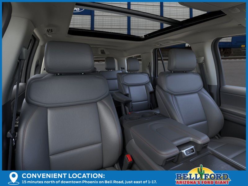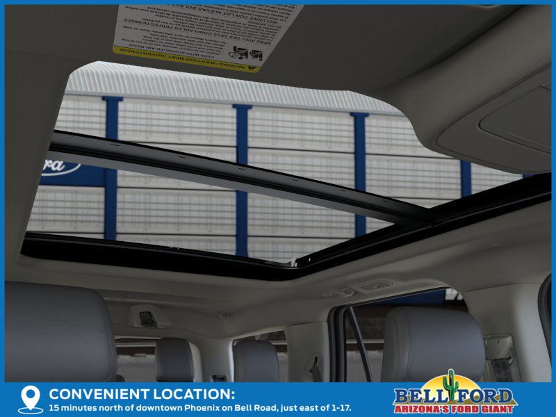 Equipment Group 202A High Package (110V/400W AC Power Outlet, 26mm Engine Radiator, 2nd Row Power-Folding Captain's Chairs, 360-Degree Zone Lighting, 3rd Row Flexible Seating, 3rd Row Vinyl Seats, 4-Door Intelligent Access (Lock/Unlock), ActiveX Front Heated Captain's Chairs, BlueCruise Equipped, Flex Powered Console, Ford Split Gate, Front Side Laminated Glass, Heated Steering Wheel, Heavy-Duty Trailer Tow, Integrated Trailer Brake Control, Memory Driver Seat, Power Panoramic Vista Roof w/Power Sunshade, Power Tilt/Telescopic Steering Wheel w/Memory, Power-Folding Sideview Mirrors w/Autofold, Rain Sensing Wipers, SecuriCode Keyless Entry Pad, Universal Garage Door Opener, USB Ports, Wheels: 20" Carbonized Gray Bright Machined Aluminum, and Wireless Charging Pad), 4WD, 3.73 Axle Ratio, 3rd row seats: split-bench, 4-Wheel Disc Brakes, 6 Speakers, ABS brakes, Air Conditioning, Alloy wheels, AM/FM radio: SiriusXM with 360L, Apple CarPlay/Android Auto, Auto High-beam Headlights, Auto-dimming Rear-View mirror, Automatic temperature control, Brake assist, Bumpers: body-color, Cloth Front Captain's Chairs, Compass, Delay-off headlights, Driver door bin, Driver State Detection, Driver vanity mirror, Dual front impact airbags, Dual front side impact airbags, Electronic Stability Control, Emergency communication system: 911 Assist, Exterior Parking Camera Rear, Four wheel independent suspension, Front anti-roll bar, Front Bucket Seats, Front Center Armrest, Front dual zone A/C, Front reading lights, Fully automatic headlights, Heated door mirrors, Illuminated entry, Intersection Assist, Low tire pressure warning, Navigation System, Occupant sensing airbag, Outside temperature display, Overhead airbag, Overhead console, Panic alarm, Passenger door bin, Passenger vanity mirror, Power door mirrors, Power driver seat, Power passenger seat, Power steering, Power windows, Radio data system, Radio: AM/FM Stereo w/MP3 Capable, Rear air conditioning, Rear anti-roll bar, Rear reading lights, Rear window defroster, Rear window wiper, Reclining 3rd row seat, Remote keyless entry, Security system, SiriusXM w/360L, Speed control, Speed-sensing steering, Speed-Sensitive Wipers, Split folding rear seat, Spoiler, Steering wheel mounted audio controls, Tachometer, Telescoping steering wheel, Tilt steering wheel, Traction control, Trip computer, Variably intermittent wipers, Voltmeter, and Wheels: 18" Dark Alloy Painted Aluminum.