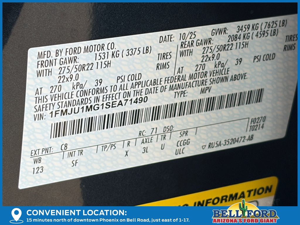 Driver's Package (Continuous Control Damping Suspension, Radio: B&O Unleashed Sound System by Bang & Olufsen, and SiriusXM w/360L), Equipment Group 600A Standard Package (2nd Row Power-Folding Captain's Chairs), Platinum Ultimate Interior Package, Platinum Ultimate Package (Black Headlamp Bezel w/Satin Trim Applique, BlueCruise Equipped (1-Year Plan), Carbon Black Front Bumper w/Lit Grille Bar, Engine Sound Enhancer, Front Door Scuff Plates w/Met Insert & Bright Rear, High Flow Exhaust System, Multicontour Active Motion Lthr Frnt Captains Chairs, Polished Stainless Steel Beltline Molding, Rear Seat Radio Controls, Rear Side Windows Laminated Glass, Satin Aluminum Expedition Lettering On Side & Hood, Satin Aluminum Platinum Badge On Tailgate, and Signature Grille Lighting), 4WD, 10 Speakers, 3.73 Axle Ratio, 3rd row seats: split-bench, 4-Wheel Disc Brakes, ABS brakes, Adjustable pedals, Air Conditioning, Alloy wheels, AM/FM radio: SiriusXM with 360L, Apple CarPlay/Android Auto, Auto High-beam Headlights, Auto-dimming door mirrors, Auto-dimming Rear-View mirror, Automatic temperature control, Brake assist, Bumpers: body-color, Compass, Delay-off headlights, Driver door bin, Driver vanity mirror, Dual front impact airbags, Dual front side impact airbags, Electronic Stability Control, Emergency communication system: 911 Assist, Exterior Parking Camera Rear, Four wheel independent suspension, Front anti-roll bar, Front Bucket Seats, Front Center Armrest, Front dual zone A/C, Front reading lights, Fully automatic headlights, Garage door transmitter, Genuine wood dashboard insert, Genuine wood door panel insert, Heated & Ventilated Leather Front Captain's Chairs, Heated door mirrors, Heated front seats, Heated rear seats, Heated steering wheel, Illuminated entry, Leather steering wheel, Low tire pressure warning, Memory seat, Navigation System, Occupant sensing airbag, Outside temperature display, Overhead airbag, Overhead console, Panic alarm, Passenger door bin, Passenger vanity mirror, Pedal memory, Power door mirrors, Power driver seat, Power moonroof: Vista Roof, Power passenger seat, Power steering, Power windows, Radio data system, Radio: B&O Sound System by Bang & Olufsen, Rain sensing wipers, Rear air conditioning, Rear anti-roll bar, Rear reading lights, Rear window defroster, Rear window wiper, Reclining 3rd row seat, Remote keyless entry, Security system, Speed control, Speed-sensing steering, Speed-Sensitive Wipers, Split folding rear seat, Spoiler, Steering wheel memory, Steering wheel mounted audio controls, Tachometer, Telescoping steering wheel, Tilt steering wheel, Traction control, Trip computer, Turn signal indicator mirrors, Variably intermittent wipers, Ventilated front seats, Voltmeter, and Wheels: 20" Ebony Bright Machined Aluminum.