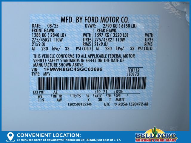 Equipment Group 400A Standard Package, Sun and Sound Package (B&O Sound System by Bang & Olufsen, Multicontour Seats w/Front Active Motion, and Panoramic Vista Roof w/Power Shade), 4WD, 10 Speakers, 3.58 Non-Limited Slip Rear Axle, 3rd row seats: bench, 4-Wheel Disc Brakes, ABS brakes, Air Conditioning, Alloy wheels, AM/FM radio: SiriusXM with 360L, Apple CarPlay/Android Auto, Auto High-beam Headlights, Auto-dimming door mirrors, Auto-dimming Rear-View mirror, Automatic temperature control, Brake assist, Bumpers: body-color, Compass, Delay-off headlights, Driver door bin, Driver vanity mirror, Dual front impact airbags, Dual front side impact airbags, Electronic Stability Control, Emergency communication system: 911 Assist, Exterior Parking Camera Rear, Four wheel independent suspension, Front anti-roll bar, Front Bucket Seats, Front Center Armrest, Front dual zone A/C, Front fog lights, Front reading lights, Fully automatic headlights, Garage door transmitter, Heated door mirrors, Heated front seats, Heated rear seats, Heated steering wheel, Heated/Ventilated Miko Sport Captain's Chairs, Illuminated entry, Knee airbag, Leather steering wheel, Low tire pressure warning, Memory seat, Navigation System, Occupant sensing airbag, Outside temperature display, Overhead airbag, Overhead console, Panic alarm, Passenger door bin, Passenger vanity mirror, Power door mirrors, Power driver seat, Power Liftgate, Power passenger seat, Power steering, Power windows, Radio: B&O Sound System by Bang & Olufsen, Rain sensing wipers, Rear air conditioning, Rear anti-roll bar, Rear reading lights, Rear window defroster, Rear window wiper, Remote keyless entry, Security system, Speed control, Speed-sensing steering, Speed-Sensitive Wipers, Split folding rear seat, Spoiler, Sport steering wheel, Steering wheel mounted audio controls, Tachometer, Telescoping steering wheel, Tilt steering wheel, Traction control, Trip computer, Turn signal indicator mirrors, Variably intermittent wipers, Ventilated front seats, and Wheels: 21" Magnetite-Painted Aluminum. Price includes: $1500 - Bonus Customer Cash. Exp. 01/05/2026 $500 - Retail Bonus Cash. Exp. 11/19/2025