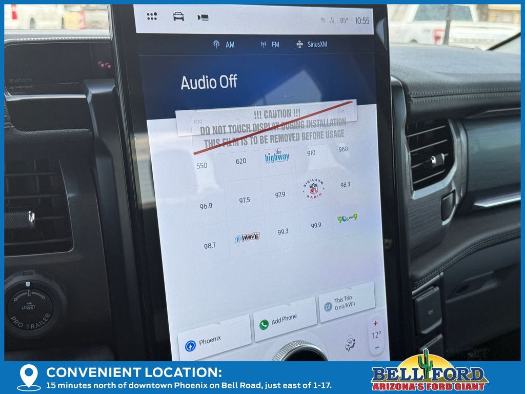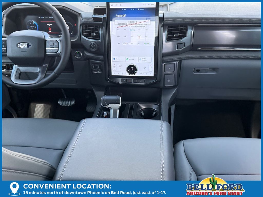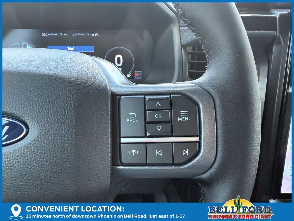 This Ford F-150 Lightning is equipped with the following options: Equipment Group 312A Standard, Max Trailer Tow Package (E-Locker, Hill Decent Control, and Trailer Brake Controller), 4-Wheel Disc Brakes, 8 Speakers, ABS brakes, ActiveX Trimmed Heated Front Seats, Adjustable pedals, Air Conditioning, Alloy wheels, Auto High-beam Headlights, Auto-dimming Rear-View mirror, Automatic temperature control, Brake assist, Bumpers: body-color, Compass, Delay-off headlights, Driver door bin, Driver vanity mirror, Dual front impact airbags, Dual front side impact airbags, Electronic Stability Control, Emergency communication system: SYNC 4 911 Assist, Four wheel independent suspension, Front anti-roll bar, Front Bucket Seats, Front Center Armrest, Front dual zone A/C, Front reading lights, Fully automatic headlights, Heated door mirrors, Heated front seats, Heated steering wheel, Illuminated entry, Internet access capable: FordPass Connect 4G, Knee airbag, Low tire pressure warning, Mobile Power Cord (120/240V), Navigation system: Connected Navigation, Occupant sensing airbag, Outside temperature display, Overhead airbag, Overhead console, Panic alarm, Passenger door bin, Passenger vanity mirror, Power door mirrors, Power driver seat, Power passenger seat, Power steering, Power windows, Radio data system, Radio: B&O Sound System by Bang & Olufsen, Rear anti-roll bar, Rear reading lights, Rear step bumper, Rear window defroster, Remote keyless entry, Security system, Speed control, Speed-sensing steering, Split folding rear seat, Steering wheel mounted audio controls, SYNC 4A w/Enhanced Voice Recognition, Tailgate Step w/Tailgate Work Surface, Telescoping steering wheel, Tilt steering wheel, Traction control, Trip computer, Turn signal indicator mirrors, Variably intermittent wipers, and Wheels: 20" Alloy Dark Carbonized Gray. Price includes: $5000 - Retail Customer Cash. Exp. 03/31/2026