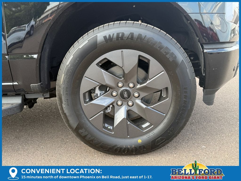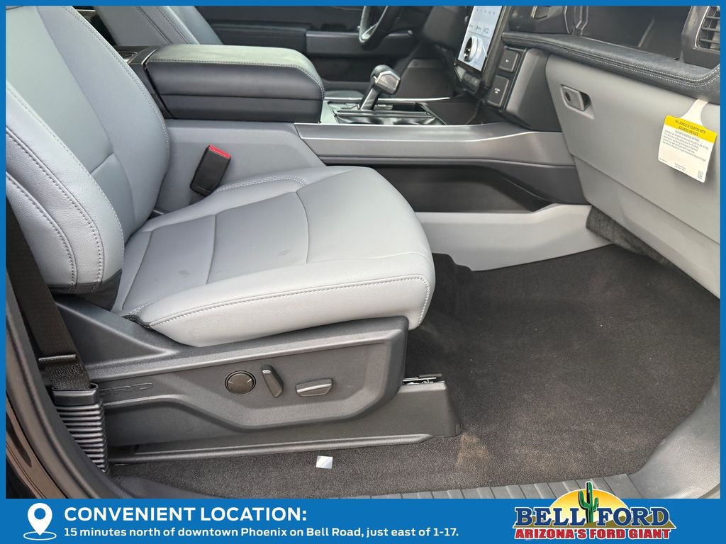 This Ford F-150 Lightning is equipped with the following options: Equipment Group 312A Standard, 4-Wheel Disc Brakes, 8 Speakers, ABS brakes, ActiveX Trimmed Heated Front Seats, Adjustable pedals, Air Conditioning, Alloy wheels, Auto High-beam Headlights, Auto-dimming Rear-View mirror, Automatic temperature control, Brake assist, Bumpers: body-color, Compass, Delay-off headlights, Driver door bin, Driver vanity mirror, Dual front impact airbags, Dual front side impact airbags, Electronic Stability Control, Emergency communication system: SYNC 4 911 Assist, Four wheel independent suspension, Front anti-roll bar, Front Bucket Seats, Front Center Armrest, Front dual zone A/C, Front reading lights, Fully automatic headlights, Heated door mirrors, Heated front seats, Heated steering wheel, Illuminated entry, Internet access capable: FordPass Connect 4G, Knee airbag, Low tire pressure warning, Mobile Power Cord (120/240V), Navigation system: Connected Navigation, Occupant sensing airbag, Outside temperature display, Overhead airbag, Overhead console, Panic alarm, Passenger door bin, Passenger vanity mirror, Power door mirrors, Power driver seat, Power passenger seat, Power steering, Power windows, Radio data system, Radio: B&O Sound System by Bang & Olufsen, Rear anti-roll bar, Rear reading lights, Rear step bumper, Rear window defroster, Remote keyless entry, Security system, Speed control, Speed-sensing steering, Split folding rear seat, Steering wheel mounted audio controls, SYNC 4A w/Enhanced Voice Recognition, Tailgate Step w/Tailgate Work Surface, Telescoping steering wheel, Tilt steering wheel, Traction control, Trip computer, Turn signal indicator mirrors, Variably intermittent wipers, and Wheels: 20" Alloy Dark Carbonized Gray. Price includes: $1000 - Bonus Cash. Exp. 03/31/2026 $1000 - Truck Month Retail Bonus Cash. Exp. 03/31/2026 $5000 - Retail Customer Cash. Exp. 03/31/2026