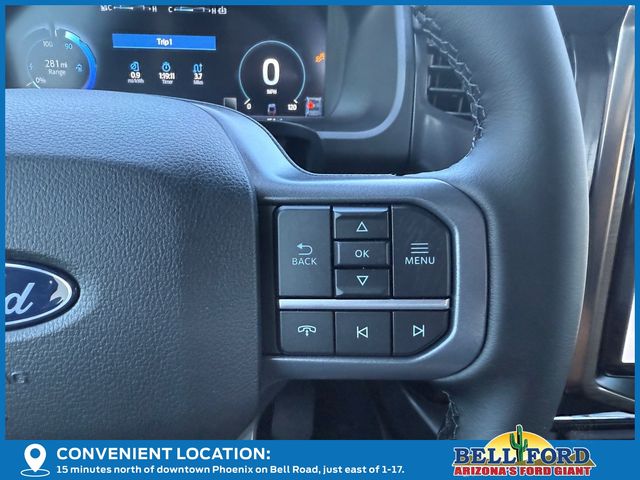 Equipment Group 511A Standard, 4-Wheel Disc Brakes, 8 Speakers, ABS brakes, ActiveX Trimmed Heated & Ventilated Seats, Adjustable pedals, Air Conditioning, Alloy wheels, Auto High-beam Headlights, Auto tilt-away steering wheel, Auto-dimming door mirrors, Auto-dimming Rear-View mirror, Automatic temperature control, Brake assist, Bumpers: body-color, Compass, Delay-off headlights, Driver door bin, Driver vanity mirror, Dual front impact airbags, Dual front side impact airbags, Electronic Stability Control, Emergency communication system: SYNC 4 911 Assist, First Aid Kit w/Ford Logo, Four wheel independent suspension, Front anti-roll bar, Front Bucket Seats, Front Center Armrest, Front dual zone A/C, Front reading lights, Fully automatic headlights, Heated door mirrors, Heated front seats, Heated rear seats, Heated steering wheel, Illuminated entry, Illuminated running boards, Knee airbag, Low tire pressure warning, Memory seat, Mobile Power Cord (120/240V), Navigation system: Connected Navigation, Occupant sensing airbag, Outside temperature display, Overhead airbag, Overhead console, Panic alarm, Passenger door bin, Passenger vanity mirror, Pedal memory, Power door mirrors, Power driver seat, Power moonroof, Power passenger seat, Power steering, Power windows, Pro Power Onboard - 9.6 kW Exportable Power, Radio data system, Radio: B&O Sound System by Bang & Olufsen, Rain sensing wipers, Rear anti-roll bar, Rear reading lights, Rear seat center armrest, Rear step bumper, Rear window defroster, Remote keyless entry, Security system, Speed control, Speed-sensing steering, Split folding rear seat, Steering wheel memory, Steering wheel mounted audio controls, SYNC 4A w/Enhanced Voice Recognition, Telescoping steering wheel, Tilt steering wheel, Traction control, Trip computer, Turn signal indicator mirrors, Variably intermittent wipers, Ventilated front seats, and Wheels: 20" Alloy Dark Carbonized Gray. Price includes: $1000 - Retail Bonus Cash. Exp. 01/05/2026