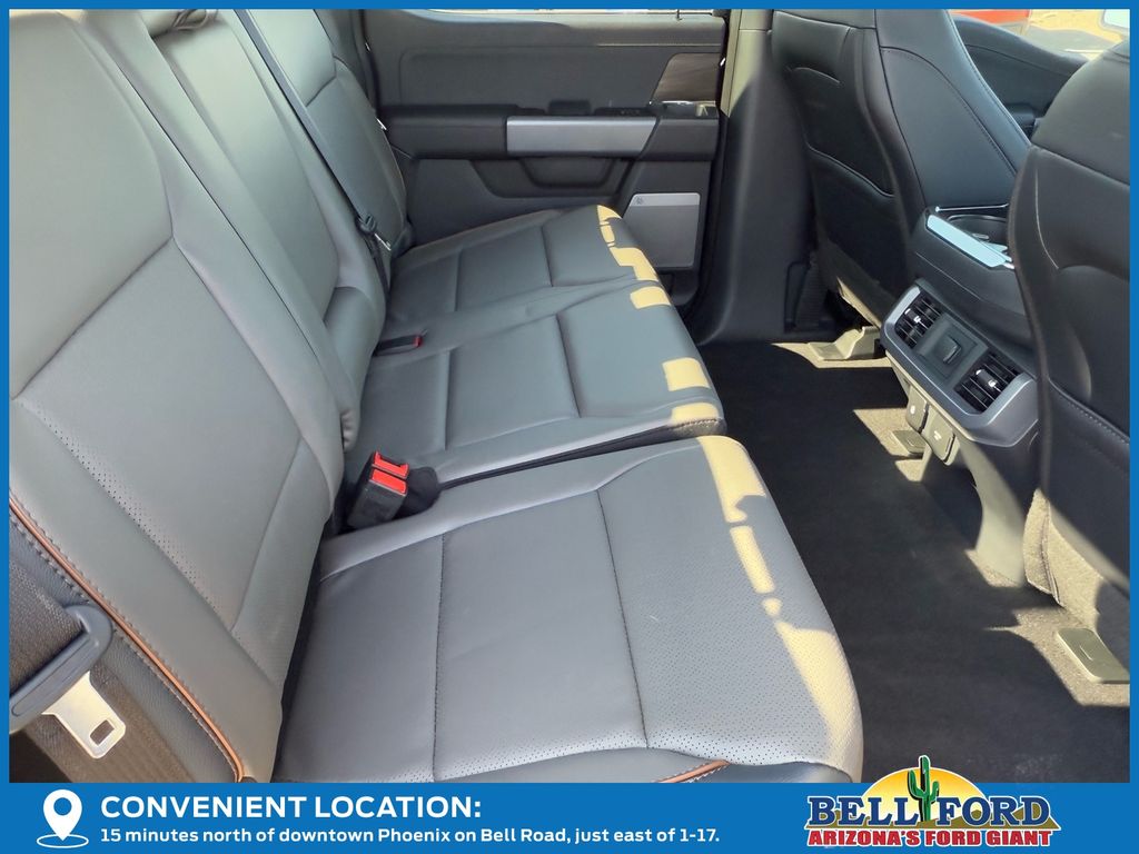Equipment Group 501A Mid (Wheels: 20" Chrome-Like PVD), FX4 Off-Road Package (4x4 FX4 Off-Road Bodyside Decal, Hill Descent Control, Monotube Rear Shocks, Off-Road Tuned Front Shock Absorbers, Rock Crawl Mode, and Tray Style Floor Liner w/o Carpet Mats), Mobile Office Package (Console Worksurface, Partitioned Lockable Rear Storage, and Wireless Charging), Tow/Haul Package, 3.5L PowerBoost Full-Hybrid V6, 4WD, 4-Wheel Disc Brakes, 8 Speakers, ABS brakes, ActiveX Trimmed Bucket Seats, Adjustable pedals, Air Conditioning, Alloy wheels, AM/FM radio: SiriusXM with 360L, Auto High-beam Headlights, Auto-dimming door mirrors, Auto-dimming Rear-View mirror, Automatic temperature control, Brake assist, Bumpers: chrome, Chrome wheels, Compass, Delay-off headlights, Driver door bin, Driver vanity mirror, Dual front impact airbags, Dual front side impact airbags, Electronic Stability Control, Emergency communication system: SYNC 4 911 Assist, Front anti-roll bar, Front Bucket Seats, Front Center Armrest, Front dual zone A/C, Front fog lights, Front reading lights, Front wheel independent suspension, Fully automatic headlights, Garage door transmitter, Heated door mirrors, Heated front seats, Heated steering wheel, Illuminated entry, Low tire pressure warning, Memory seat, Navigation system: Connected Navigation, Occupant sensing airbag, Outside temperature display, Overhead airbag, Overhead console, Panic alarm, Passenger door bin, Passenger vanity mirror, Pedal memory, Power door mirrors, Power driver seat, Power passenger seat, Power steering, Power windows, Pro Power Onboard - 7.2KW, Radio data system, Radio: B&O Sound System by Bang & Olufsen, Rain sensing wipers, Rear reading lights, Rear seat center armrest, Rear step bumper, Rear window defroster, Remote keyless entry, Security system, Speed control, Split folding rear seat, Steering wheel mounted audio controls, SYNC 4 w/Enhanced Voice Recognition, Tachometer, Telescoping steering wheel, Tilt steering wheel, Traction control, Trip computer, Turn signal indicator mirrors, Variably intermittent wipers, Ventilated front seats, Voltmeter, and Wheels: 18" Chrome-Like PVD.