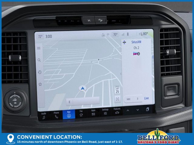Equipment Group 501A Mid (6" Angular Bright Anodized Step Bar, Illuminated Driver & Passenger Visors, Power-Sliding Rear Window, and Wheels: 20" Chrome-Like PVD), FX4 Off-Road Package (4x4 FX4 Off-Road Bodyside Decal, Hill Descent Control, Monotube Rear Shocks, Off-Road Tuned Front Shock Absorbers, Rock Crawl Mode, and Tray Style Floor Liner w/o Carpet Mats), Tow/Haul Package, 4WD, 4-Wheel Disc Brakes, 8 Speakers, ABS brakes, ActiveX Trimmed Bucket Seats, Adjustable pedals, Air Conditioning, Alloy wheels, AM/FM radio: SiriusXM with 360L, Auto High-beam Headlights, Auto-dimming door mirrors, Auto-dimming Rear-View mirror, Automatic temperature control, Brake assist, Bumpers: chrome, Chrome wheels, Compass, Delay-off headlights, Driver door bin, Driver vanity mirror, Dual front impact airbags, Dual front side impact airbags, Electronic Stability Control, Emergency communication system: SYNC 4 911 Assist, First Aid Kit w/Ford Logo, Front anti-roll bar, Front Bucket Seats, Front Center Armrest, Front dual zone A/C, Front fog lights, Front reading lights, Front wheel independent suspension, Fully automatic headlights, Garage door transmitter, Heated door mirrors, Heated front seats, Heated steering wheel, Illuminated entry, Low tire pressure warning, Memory seat, Navigation system: Connected Navigation, Occupant sensing airbag, Outside temperature display, Overhead airbag, Overhead console, Panic alarm, Passenger door bin, Passenger vanity mirror, Pedal memory, Power door mirrors, Power driver seat, Power passenger seat, Power steering, Power windows, Radio data system, Radio: B&O Sound System by Bang & Olufsen, Rain sensing wipers, Rear reading lights, Rear seat center armrest, Rear step bumper, Rear window defroster, Remote keyless entry, Security system, Speed control, Split folding rear seat, Steering wheel mounted audio controls, SYNC 4 w/Enhanced Voice Recognition, Tachometer, Telescoping steering wheel, Tilt steering wheel, Traction control, Trip computer, Turn signal indicator mirrors, Variably intermittent wipers, Ventilated front seats, Voltmeter, and Wheels: 18" Chrome-Like PVD.