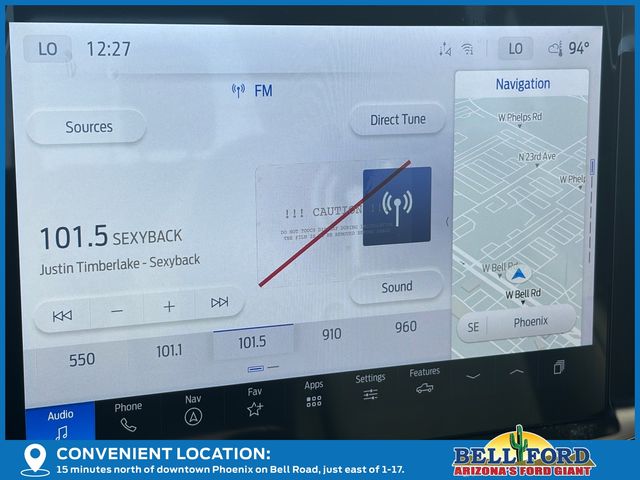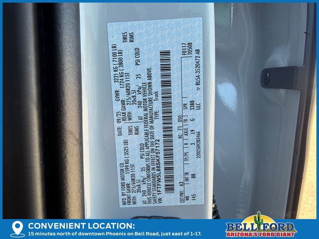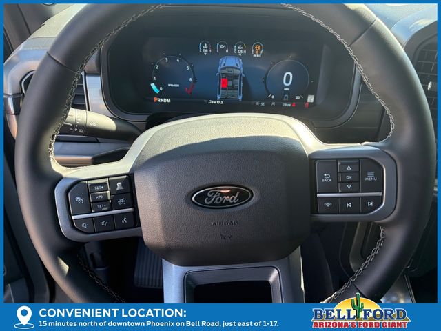 Equipment Group 501A Mid (Wheels: 20" Chrome-Like PVD), FX4 Off-Road Package (4x4 FX4 Off-Road Bodyside Decal, Hill Descent Control, Monotube Rear Shocks, Off-Road Tuned Front Shock Absorbers, Rock Crawl Mode, and Tray Style Floor Liner w/o Carpet Mats), Tow/Haul Package, 4WD, 3.31 Axle Ratio, 4-Wheel Disc Brakes, 8 Speakers, ABS brakes, ActiveX Trimmed Bucket Seats, Adjustable pedals, Air Conditioning, Alloy wheels, AM/FM radio: SiriusXM with 360L, Auto High-beam Headlights, Auto-dimming door mirrors, Auto-dimming Rear-View mirror, Automatic temperature control, Brake assist, Bumpers: chrome, Chrome wheels, Compass, Delay-off headlights, Driver door bin, Driver vanity mirror, Dual front impact airbags, Dual front side impact airbags, Electronic Stability Control, Emergency communication system: SYNC 4 911 Assist, First Aid Kit w/Ford Logo, Front anti-roll bar, Front Bucket Seats, Front Center Armrest, Front dual zone A/C, Front fog lights, Front reading lights, Front wheel independent suspension, Fully automatic headlights, Garage door transmitter, Heated door mirrors, Heated front seats, Heated steering wheel, Illuminated entry, Low tire pressure warning, Memory seat, Navigation system: Connected Navigation, Occupant sensing airbag, Outside temperature display, Overhead airbag, Overhead console, Panic alarm, Passenger door bin, Passenger vanity mirror, Pedal memory, Power door mirrors, Power driver seat, Power passenger seat, Power steering, Power windows, Radio data system, Radio: B&O Sound System by Bang & Olufsen, Rain sensing wipers, Rear reading lights, Rear seat center armrest, Rear step bumper, Rear window defroster, Remote keyless entry, Security system, Speed control, Split folding rear seat, Steering wheel mounted audio controls, SYNC 4 w/Enhanced Voice Recognition, Tachometer, Telescoping steering wheel, Tilt steering wheel, Traction control, Trip computer, Turn signal indicator mirrors, Variably intermittent wipers, Ventilated front seats, Voltmeter, and Wheels: 18" Chrome-Like PVD.