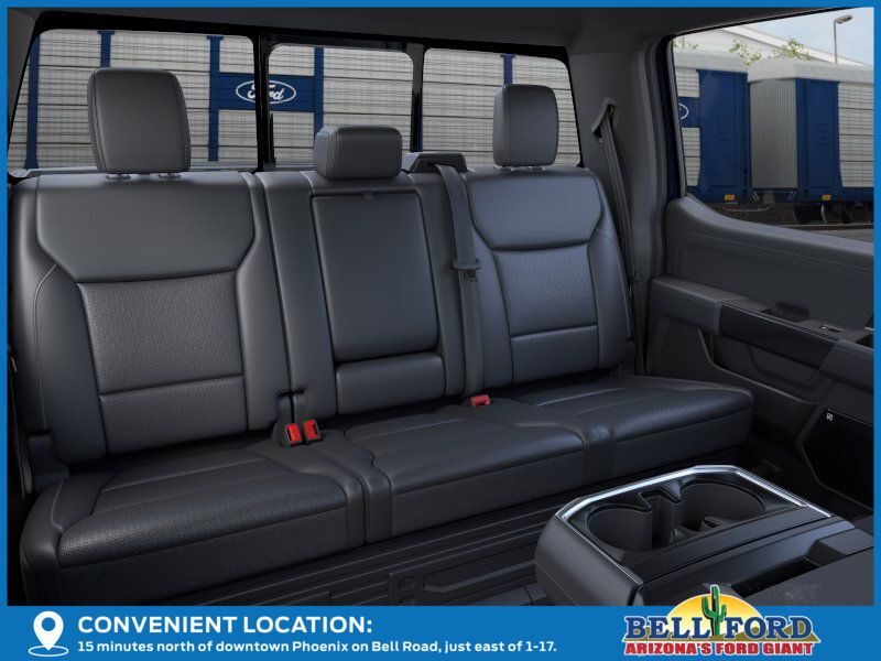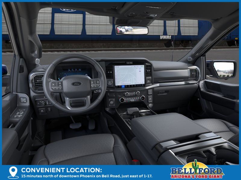 This Ford F-150 is equipped with the following options: Equipment Group 502A High (2nd Row Heated Seats, Ambient Lighting - Ice Blue Color Only, Heads-Up Display, Illuminated Driver & Passenger Visors, Power-Sliding Rear Window, Radio: B&O Unleashed Sound System by Bang & Olufsen, and Wheels: 20" Chrome-Like PVD), FX4 Off-Road Package (4x4 FX4 Off-Road Bodyside Decal, Hill Descent Control, Monotube Rear Shocks, Off-Road Tuned Front Shock Absorbers, Rock Crawl Mode, and Tray Style Floor Liner w/o Carpet Mats), Mobile Office Package (Console Worksurface, Partitioned Lockable Rear Storage, and Wireless Charging), 4WD, 4-Wheel Disc Brakes, 8 Speakers, ABS brakes, ActiveX Trimmed Bucket Seats, Adjustable pedals, Air Conditioning, Alloy wheels, AM/FM radio: SiriusXM with 360L, Auto High-beam Headlights, Auto-dimming door mirrors, Auto-dimming Rear-View mirror, Automatic temperature control, Brake assist, Bumpers: chrome, Chrome wheels, Compass, Delay-off headlights, Driver door bin, Driver vanity mirror, Dual front impact airbags, Dual front side impact airbags, Electronic Stability Control, Emergency communication system: SYNC 4 911 Assist, Front anti-roll bar, Front Bucket Seats, Front Center Armrest, Front dual zone A/C, Front fog lights, Front reading lights, Front wheel independent suspension, Fully automatic headlights, Garage door transmitter, Heated door mirrors, Heated front seats, Heated steering wheel, Illuminated entry, Internet access capable: FordPass Connect 5G, Low tire pressure warning, Memory seat, Navigation system: Connected Navigation, Occupant sensing airbag, Outside temperature display, Overhead airbag, Overhead console, Panic alarm, Passenger door bin, Passenger vanity mirror, Pedal memory, Power door mirrors, Power driver seat, Power passenger seat, Power steering, Power windows, Radio data system, Radio: B&O Sound System by Bang & Olufsen, Rain sensing wipers, Rear reading lights, Rear seat center armrest, Rear step bumper, Rear window defroster, Remote keyless entry, Security system, Speed control, Split folding rear seat, Steering wheel mounted audio controls, SYNC 4 w/Enhanced Voice Recognition, Tachometer, Telescoping steering wheel, Tilt steering wheel, Traction control, Trip computer, Turn signal indicator mirrors, Variably intermittent wipers, Ventilated front seats, Voltmeter, and Wheels: 18" Chrome-Like PVD. Price includes: $1000 - Final Days Mega Bonus Cash. Exp. 01/02/2026 $2000 - Retail Customer Cash. Exp. 01/05/2026