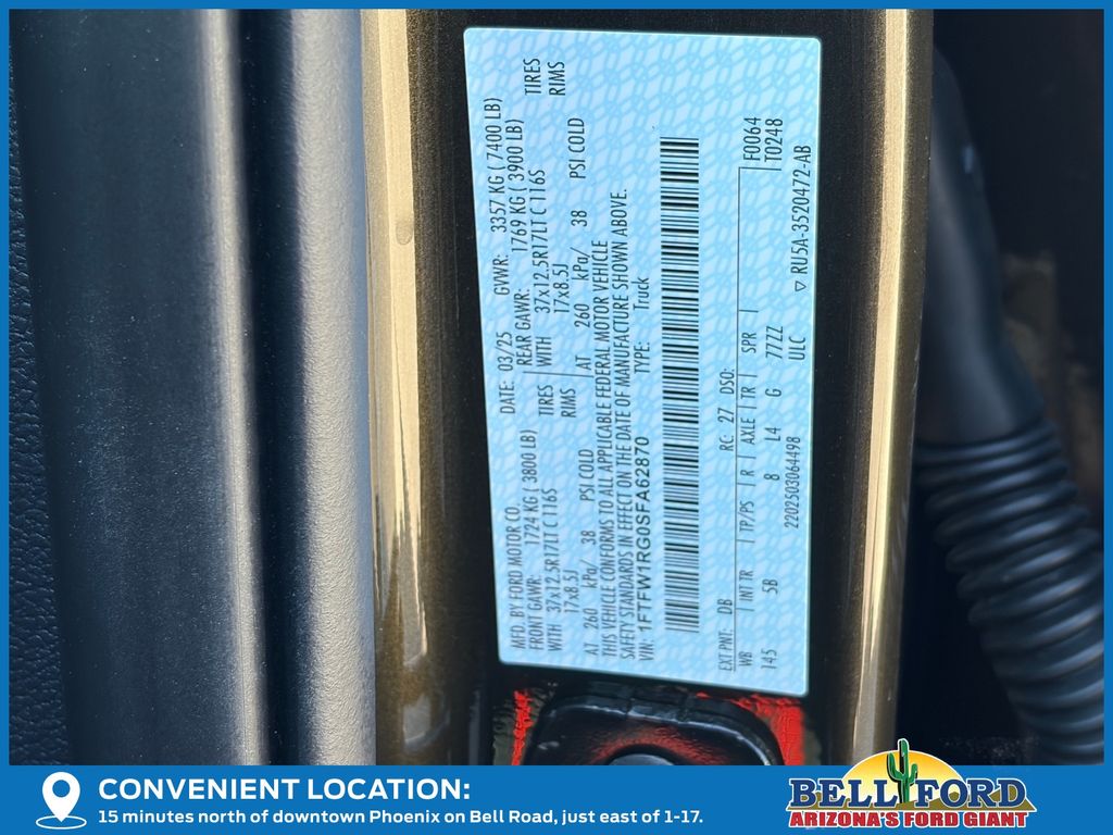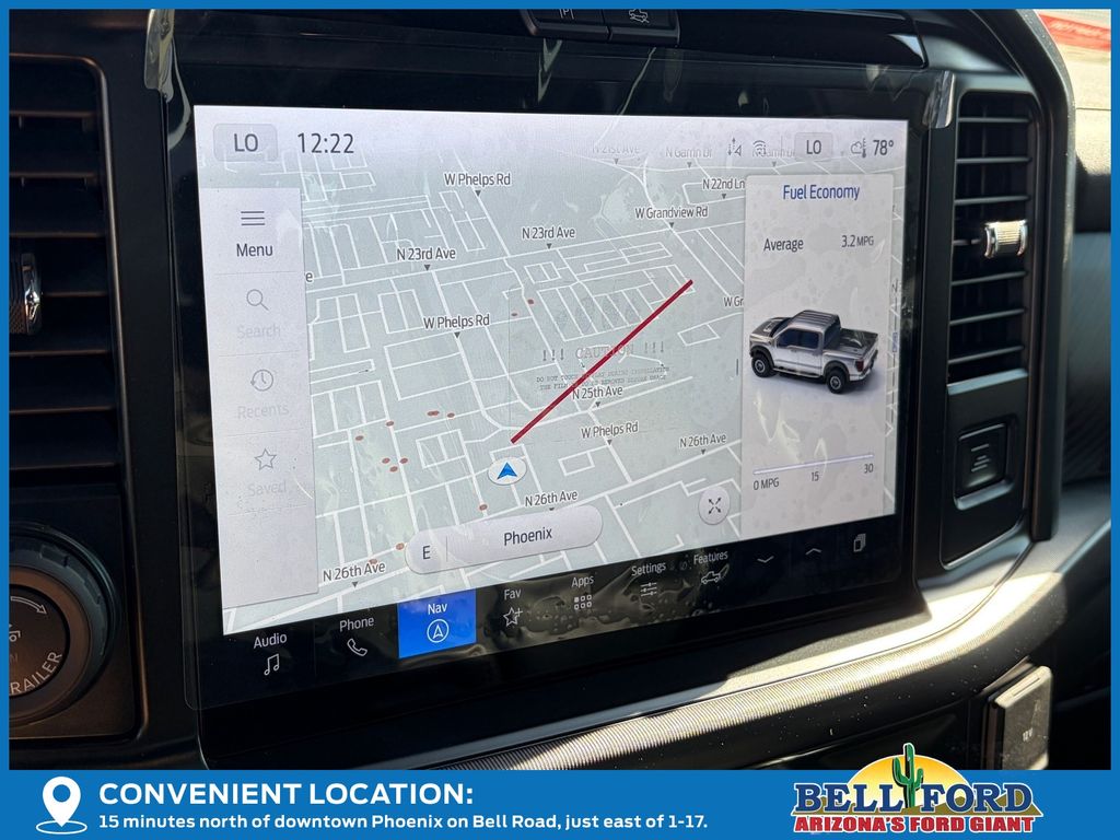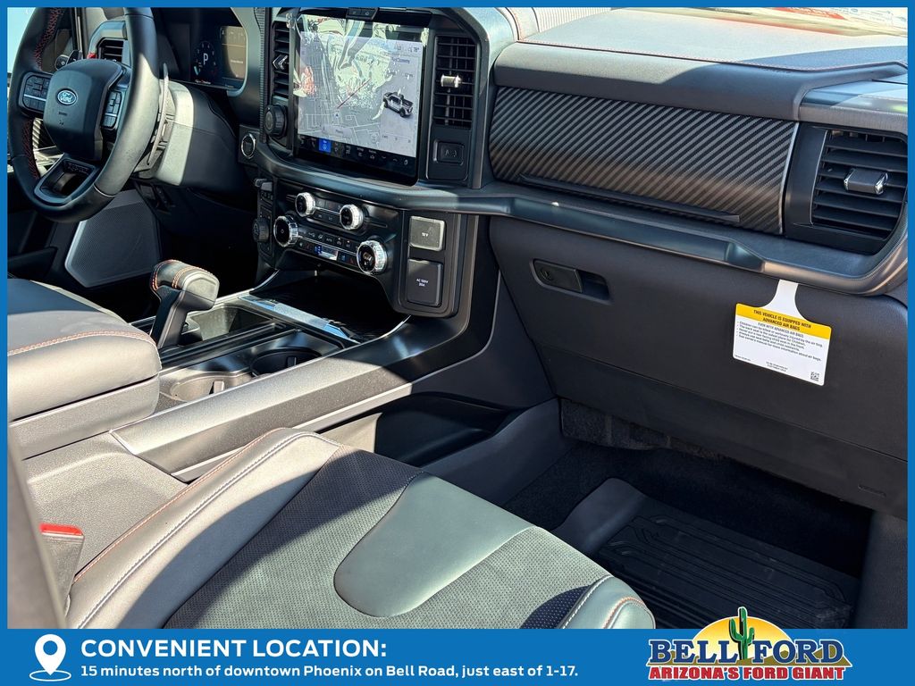 Equipment Group 802A Raptor 37 (Carbon Fiber Interior Appliques, Dual Valve Shocks, Modular Front Bumper, RECARO Alcantara Suede Front Seats, and Wheels: Raptor 37 Unique 17" Cast Aluminum), 4WD, 14 Speakers, 17" Cast Aluminum Wheels, 4-Wheel Disc Brakes, ABS brakes, Adjustable pedals, Air Conditioning, Alloy wheels, AM/FM radio: SiriusXM with 360L, Auto High-beam Headlights, Auto tilt-away steering wheel, Auto-dimming door mirrors, Auto-dimming Rear-View mirror, Automatic temperature control, Brake assist, Bumpers: body-color, Compass, Delay-off headlights, Driver door bin, Driver vanity mirror, Dual front impact airbags, Dual front side impact airbags, Electronic Locking w/4.10 Axle Ratio, Electronic Stability Control, Emergency communication system: SYNC 4 911 Assist, Front anti-roll bar, Front Bucket Seats, Front Center Armrest, Front dual zone A/C, Front fog lights, Front License Plate Bracket, Front reading lights, Front wheel independent suspension, Fully automatic headlights, Garage door transmitter, Heads-Up Display, Heated door mirrors, Heated front seats, Heated rear seats, Heated steering wheel, Illuminated entry, Lane Departure Warning System, Leather steering wheel, Leather Trimmed Seats, Low tire pressure warning, Memory seat, Navigation system: Connected Navigation, Occupant sensing airbag, Outside temperature display, Overhead airbag, Overhead console, Panic alarm, Passenger door bin, Passenger vanity mirror, Pedal memory, Power door mirrors, Power driver seat, Power passenger seat, Power steering, Power windows, Radio data system, Radio: B&O Unleashed Sound System by Bang & Olufsen, Rain sensing wipers, Rear reading lights, Rear step bumper, Rear window defroster, Remote keyless entry, Security system, Speed control, Speed-sensing steering, Split folding rear seat, Steering wheel memory, Steering wheel mounted audio controls, SYNC 4 w/Enhanced Voice Recognition, Tachometer, Telescoping steering wheel, Tilt steering wheel, Tough Bed Spray-In Bedliner, Traction control, Trip computer, Turn signal indicator mirrors, Twin Panel Moonroof, Variably intermittent wipers, and Ventilated front seats.