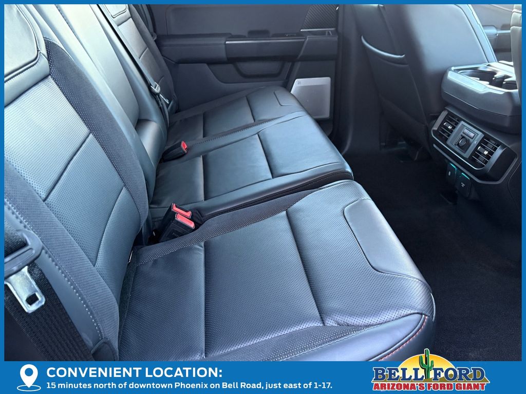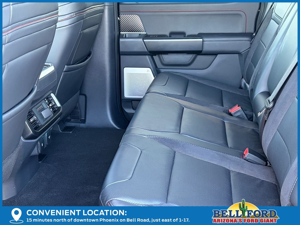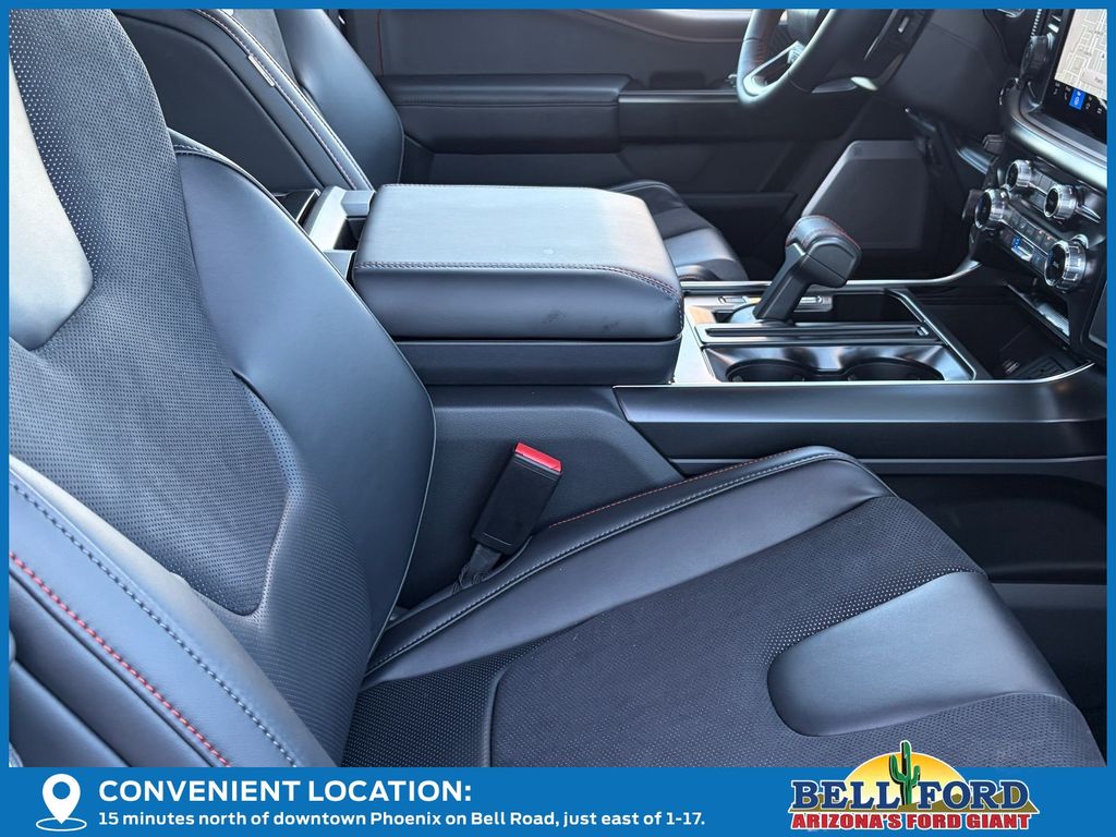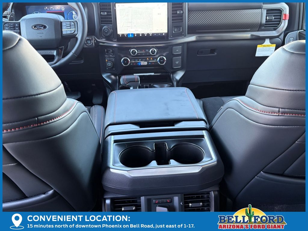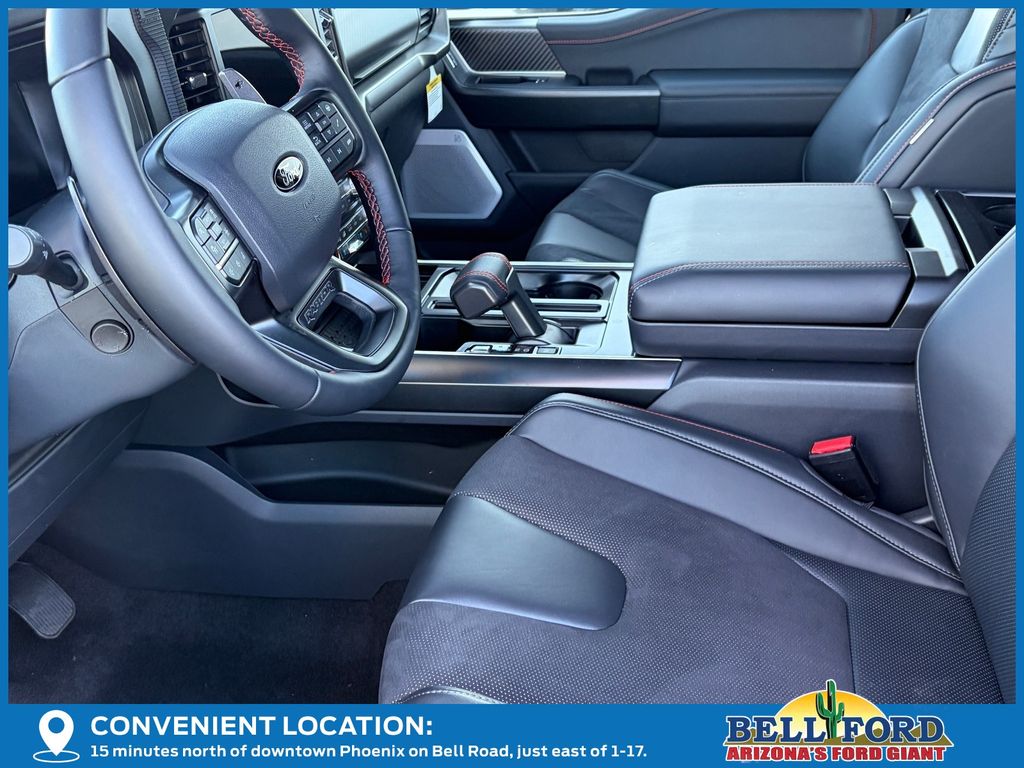 This Ford F-150 is equipped with the following options: Equipment Group 802A Raptor 37 (Carbon Fiber Interior Appliques, Dual Valve Shocks, Modular Front Bumper, RECARO Alcantara Suede Front Seats, and Wheels: Raptor 37 Unique 17" Cast Aluminum), 4WD, 14 Speakers, 17" Cast Aluminum Wheels, 4-Wheel Disc Brakes, ABS brakes, Adjustable pedals, Air Conditioning, Alloy wheels, AM/FM radio: SiriusXM with 360L, Auto High-beam Headlights, Auto tilt-away steering wheel, Auto-dimming door mirrors, Auto-dimming Rear-View mirror, Automatic temperature control, Brake assist, Bumpers: body-color, Compass, Delay-off headlights, Driver door bin, Driver vanity mirror, Dual front impact airbags, Dual front side impact airbags, Electronic Locking w/4.10 Axle Ratio, Electronic Stability Control, Emergency communication system: SYNC 4 911 Assist, Front anti-roll bar, Front Bucket Seats, Front Center Armrest, Front dual zone A/C, Front fog lights, Front reading lights, Front wheel independent suspension, Fully automatic headlights, Garage door transmitter, Heads-Up Display, Heated door mirrors, Heated front seats, Heated rear seats, Heated steering wheel, Illuminated entry, Lane Departure Warning System, Leather steering wheel, Leather Trimmed Seats, Low tire pressure warning, Memory seat, Navigation system: Connected Navigation, Occupant sensing airbag, Outside temperature display, Overhead airbag, Overhead console, Panic alarm, Passenger door bin, Passenger vanity mirror, Pedal memory, Power door mirrors, Power driver seat, Power passenger seat, Power steering, Power windows, Radio data system, Radio: B&O Unleashed Sound System by Bang & Olufsen, Rain sensing wipers, Rear reading lights, Rear step bumper, Rear window defroster, Remote keyless entry, Security system, Speed control, Speed-sensing steering, Split folding rear seat, Steering wheel memory, Steering wheel mounted audio controls, SYNC 4 w/Enhanced Voice Recognition, Tachometer, Telescoping steering wheel, Tilt steering wheel, Tough Bed Spray-In Bedliner, Traction control, Trip computer, Turn signal indicator mirrors, Twin Panel Moonroof, Variably intermittent wipers, and Ventilated front seats.