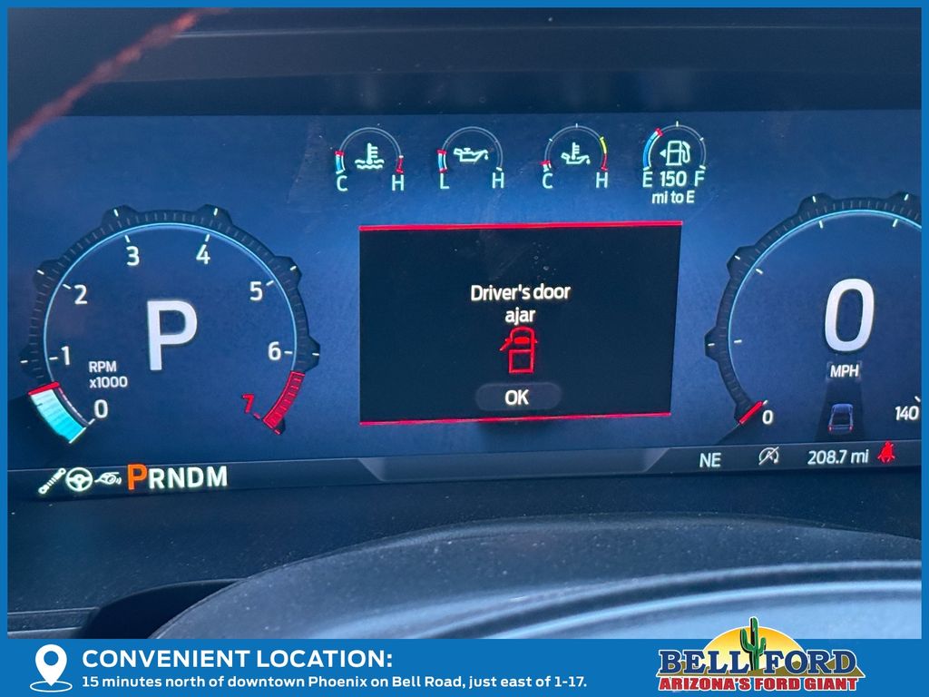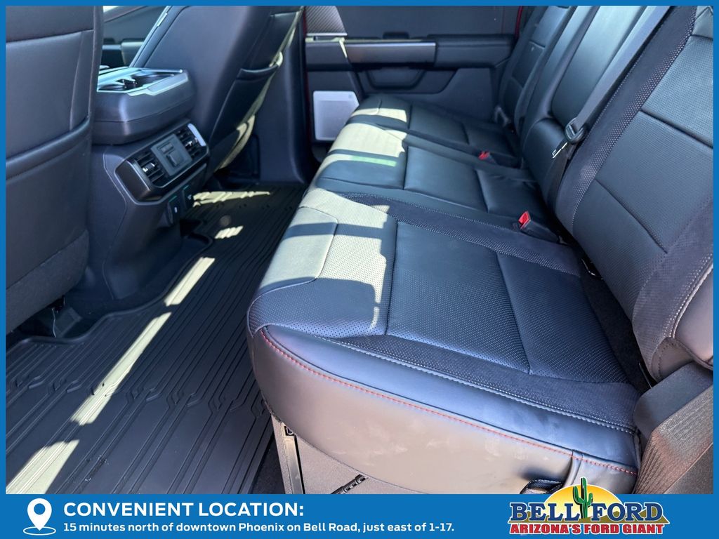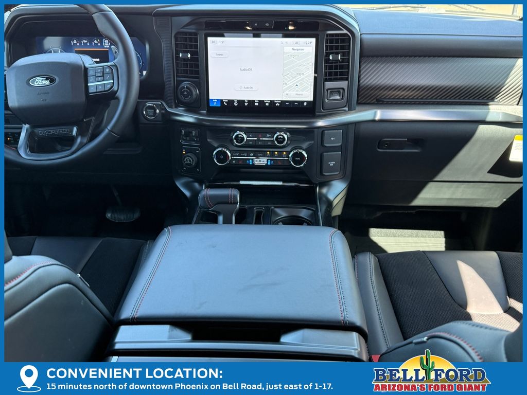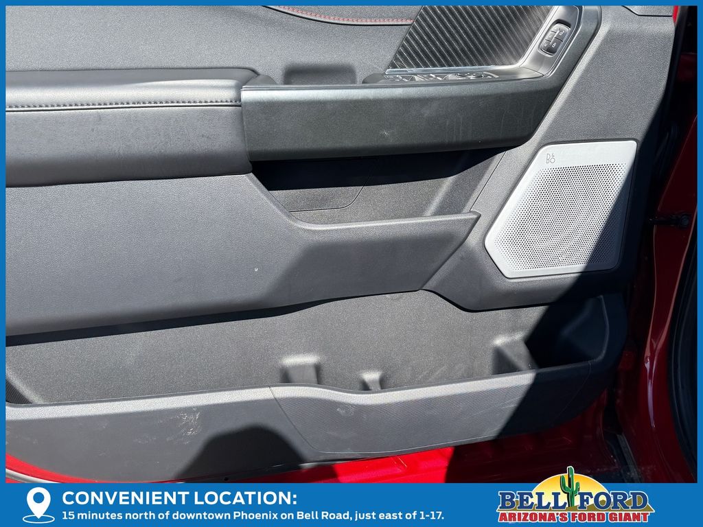 This Ford F-150 is equipped with the following options: Equipment Group 802A Raptor 37 (Carbon Fiber Interior Appliques, Dual Valve Shocks, Modular Front Bumper, RECARO Alcantara Suede Front Seats, and Wheels: Raptor 37 Unique 17" Cast Aluminum), 4WD, 14 Speakers, 17" Cast Aluminum Wheels, 4-Wheel Disc Brakes, ABS brakes, Adjustable pedals, Air Conditioning, Alloy wheels, AM/FM radio: SiriusXM with 360L, Auto High-beam Headlights, Auto tilt-away steering wheel, Auto-dimming door mirrors, Auto-dimming Rear-View mirror, Automatic temperature control, Brake assist, Bumpers: body-color, Compass, Delay-off headlights, Driver door bin, Driver vanity mirror, Dual front impact airbags, Dual front side impact airbags, Electronic Locking w/4.10 Axle Ratio, Electronic Stability Control, Emergency communication system: SYNC 4 911 Assist, Front anti-roll bar, Front Bucket Seats, Front Center Armrest, Front dual zone A/C, Front fog lights, Front License Plate Bracket, Front reading lights, Front wheel independent suspension, Fully automatic headlights, Garage door transmitter, Heads-Up Display, Heated door mirrors, Heated front seats, Heated rear seats, Heated steering wheel, Illuminated entry, Internet access capable: FordPass Connect 5G, Lane Departure Warning System, Leather steering wheel, Leather Trimmed Seats, Low tire pressure warning, Memory seat, Navigation system: Connected Navigation, Occupant sensing airbag, Outside temperature display, Overhead airbag, Overhead console, Panic alarm, Passenger door bin, Passenger vanity mirror, Pedal memory, Power door mirrors, Power driver seat, Power passenger seat, Power steering, Power windows, Radio data system, Radio: B&O Unleashed Sound System by Bang & Olufsen, Rain sensing wipers, Rear reading lights, Rear step bumper, Rear window defroster, Remote keyless entry, Security system, Speed control, Speed-sensing steering, Split folding rear seat, Steering wheel memory, Steering wheel mounted audio controls, SYNC 4 w/Enhanced Voice Recognition, Tachometer, Telescoping steering wheel, Tilt steering wheel, Tough Bed Spray-In Bedliner, Traction control, Trip computer, Turn signal indicator mirrors, Twin Panel Moonroof, Variably intermittent wipers, and Ventilated front seats.