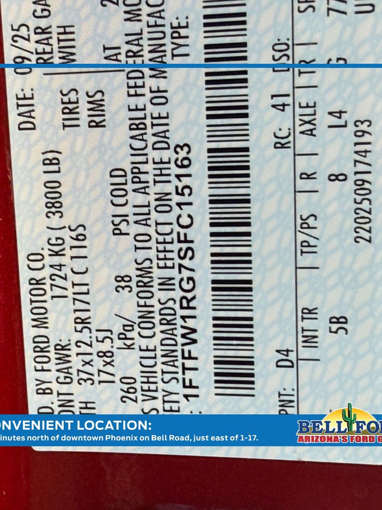 - VIN : 1FTFW1RG7SFC15163