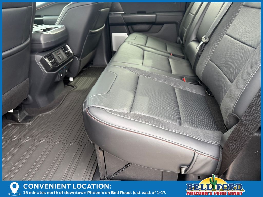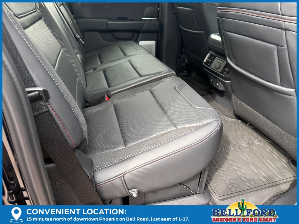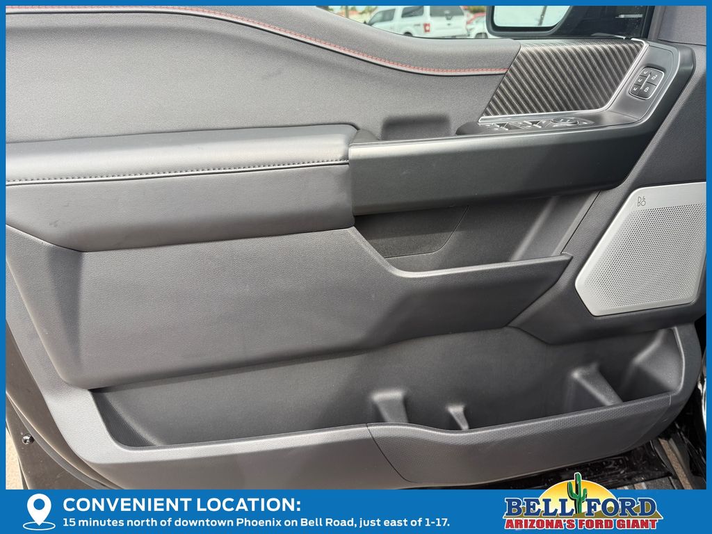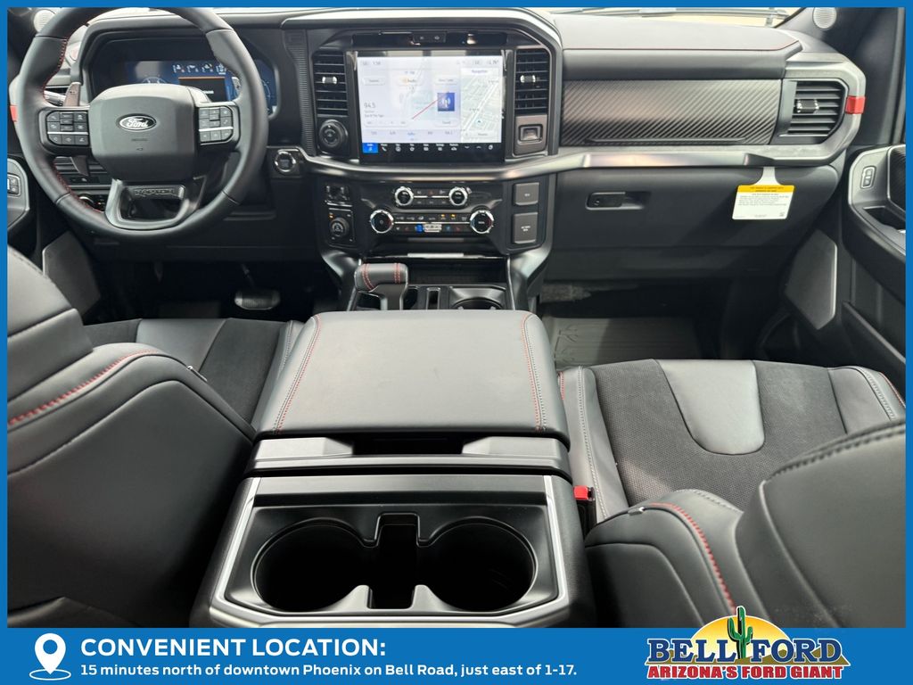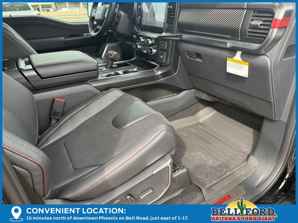 This Ford F-150 is equipped with the following options: Equipment Group 802A Raptor 37 (Carbon Fiber Interior Appliques, Dual Valve Shocks, Modular Front Bumper, RECARO Alcantara Suede Front Seats, and Wheels: Raptor 37 Unique 17" Cast Aluminum), 4WD, 14 Speakers, 17" Cast Aluminum Wheels, 4-Wheel Disc Brakes, ABS brakes, Adjustable pedals, Air Conditioning, Alloy wheels, AM/FM radio: SiriusXM with 360L, Auto High-beam Headlights, Auto tilt-away steering wheel, Auto-dimming door mirrors, Auto-dimming Rear-View mirror, Automatic temperature control, Brake assist, Bumpers: body-color, Compass, Delay-off headlights, Driver door bin, Driver vanity mirror, Dual front impact airbags, Dual front side impact airbags, Electronic Locking w/4.10 Axle Ratio, Electronic Stability Control, Emergency communication system: SYNC 4 911 Assist, Front anti-roll bar, Front Bucket Seats, Front Center Armrest, Front dual zone A/C, Front fog lights, Front License Plate Bracket, Front reading lights, Front wheel independent suspension, Fully automatic headlights, Garage door transmitter, Heads-Up Display, Heated door mirrors, Heated front seats, Heated rear seats, Heated steering wheel, Illuminated entry, Internet access capable: FordPass Connect 5G, Lane Departure Warning System, Leather steering wheel, Leather Trimmed Seats, Low tire pressure warning, Memory seat, Navigation system: Connected Navigation, Occupant sensing airbag, Outside temperature display, Overhead airbag, Overhead console, Panic alarm, Passenger door bin, Passenger vanity mirror, Pedal memory, Power door mirrors, Power driver seat, Power passenger seat, Power steering, Power windows, Radio data system, Radio: B&O Unleashed Sound System by Bang & Olufsen, Rain sensing wipers, Rear reading lights, Rear step bumper, Rear window defroster, Remote keyless entry, Security system, Speed control, Speed-sensing steering, Split folding rear seat, Steering wheel memory, Steering wheel mounted audio controls, SYNC 4 w/Enhanced Voice Recognition, Tachometer, Telescoping steering wheel, Tilt steering wheel, Tough Bed Spray-In Bedliner, Traction control, Trip computer, Turn signal indicator mirrors, Twin Panel Moonroof, Variably intermittent wipers, and Ventilated front seats.