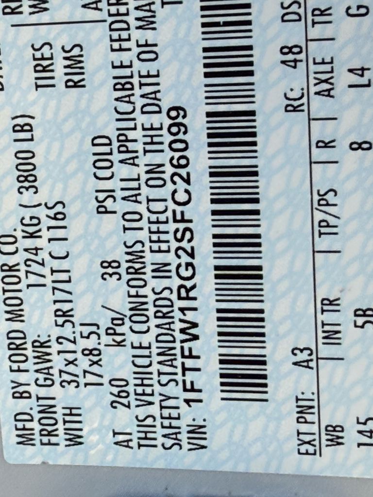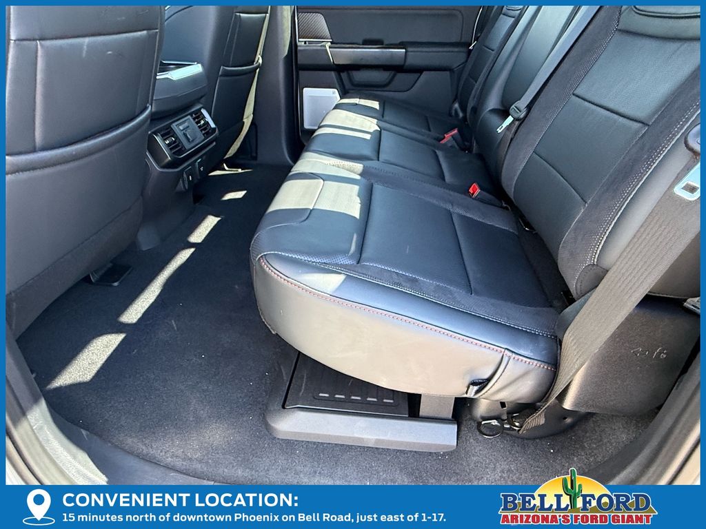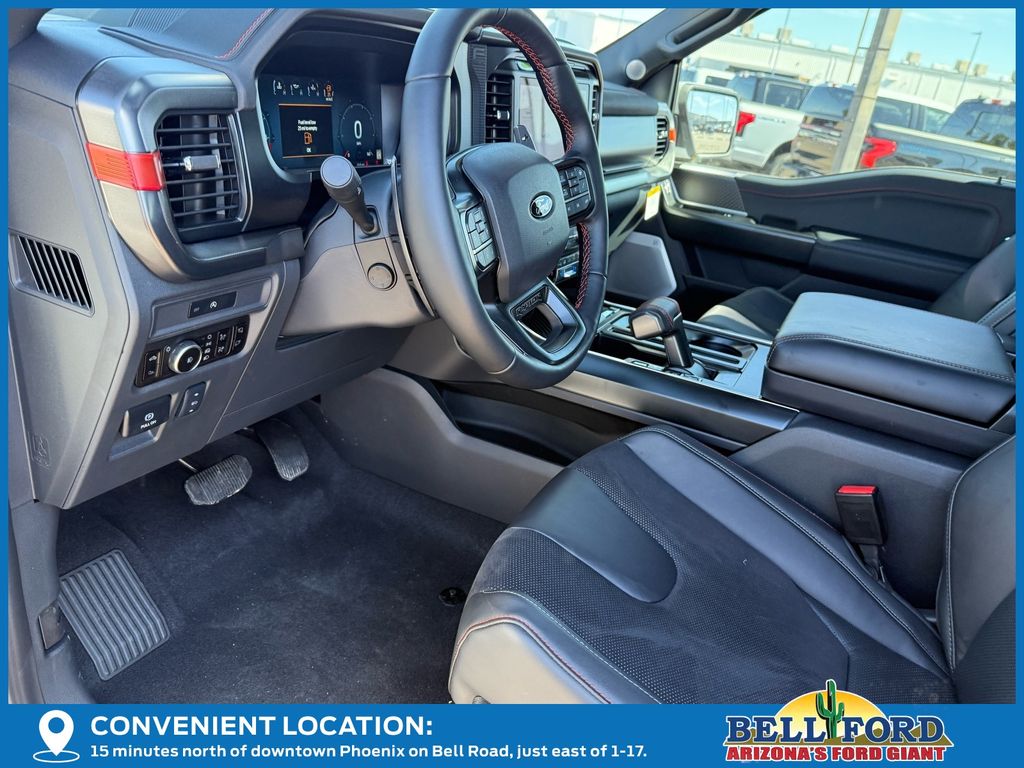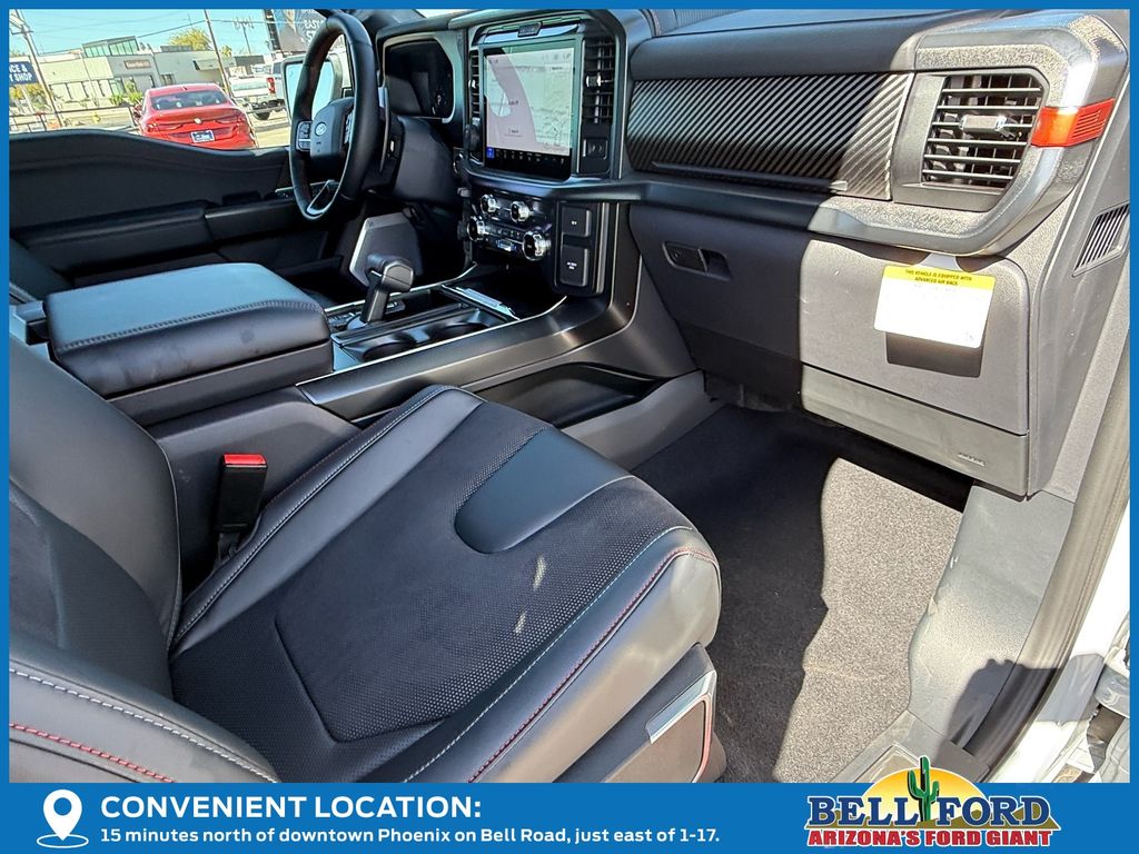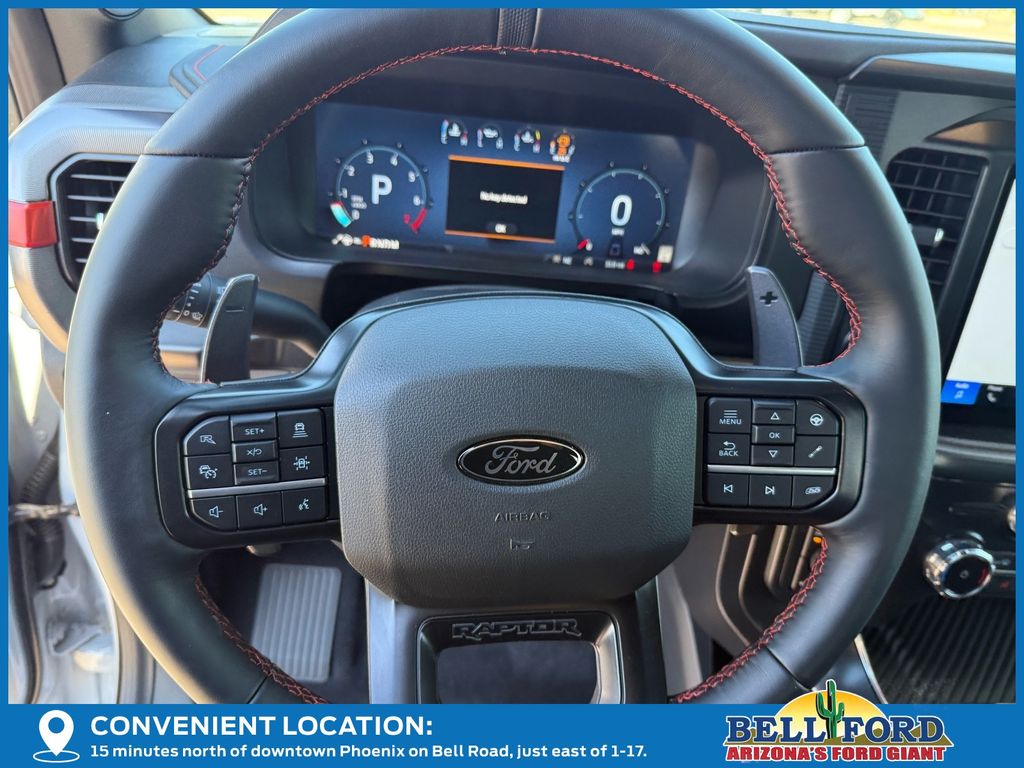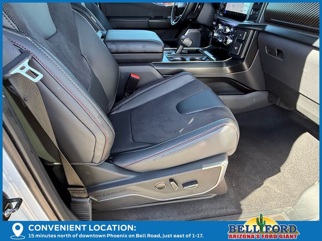 This Ford F-150 is equipped with the following options: Equipment Group 802A Raptor 37 (Carbon Fiber Interior Appliques, Dual Valve Shocks, Modular Front Bumper, RECARO Alcantara Suede Front Seats, and Wheels: Raptor 37 Unique 17" Cast Aluminum), 4WD, 14 Speakers, 17" Cast Aluminum Wheels, 4-Wheel Disc Brakes, ABS brakes, Adjustable pedals, Air Conditioning, Alloy wheels, AM/FM radio: SiriusXM with 360L, Auto High-beam Headlights, Auto tilt-away steering wheel, Auto-dimming door mirrors, Auto-dimming Rear-View mirror, Automatic temperature control, Brake assist, Bumpers: body-color, Compass, Delay-off headlights, Driver door bin, Driver vanity mirror, Dual front impact airbags, Dual front side impact airbags, Electronic Locking w/4.10 Axle Ratio, Electronic Stability Control, Emergency communication system: SYNC 4 911 Assist, Front anti-roll bar, Front Bucket Seats, Front Center Armrest, Front dual zone A/C, Front fog lights, Front reading lights, Front wheel independent suspension, Fully automatic headlights, Garage door transmitter, Heads-Up Display, Heated door mirrors, Heated front seats, Heated rear seats, Heated steering wheel, Illuminated entry, Internet access capable: FordPass Connect 5G, Lane Departure Warning System, Leather steering wheel, Leather Trimmed Seats, Low tire pressure warning, Memory seat, Navigation system: Connected Navigation, Occupant sensing airbag, Outside temperature display, Overhead airbag, Overhead console, Panic alarm, Passenger door bin, Passenger vanity mirror, Pedal memory, Power door mirrors, Power driver seat, Power passenger seat, Power steering, Power windows, Radio data system, Radio: B&O Unleashed Sound System by Bang & Olufsen, Rain sensing wipers, Rear reading lights, Rear step bumper, Rear window defroster, Remote keyless entry, Security system, Speed control, Speed-sensing steering, Split folding rear seat, Steering wheel memory, Steering wheel mounted audio controls, SYNC 4 w/Enhanced Voice Recognition, Tachometer, Telescoping steering wheel, Tilt steering wheel, Tough Bed Spray-In Bedliner, Traction control, Trip computer, Turn signal indicator mirrors, Twin Panel Moonroof, Variably intermittent wipers, and Ventilated front seats.