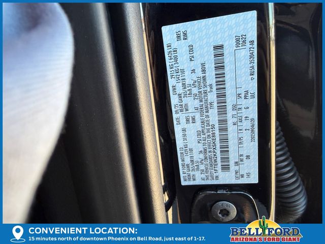 Equipment Group 200B Standard, GVWR: 6,426 lbs Payload Package, 3.55 Axle Ratio, 4-Wheel Disc Brakes, 6 Speakers, ABS brakes, Air Conditioning, Alloy wheels, AM/FM radio: SiriusXM with 360L, Auto High-beam Headlights, Brake assist, Bumpers: body-color, Compass, Delay-off headlights, Driver door bin, Dual front impact airbags, Dual front side impact airbags, Electronic Stability Control, Emergency communication system: SYNC 4 911 Assist, Front anti-roll bar, Front Bucket Seats, Front Center Armrest, Front reading lights, Front wheel independent suspension, Fully automatic headlights, Heated door mirrors, Illuminated entry, Low tire pressure warning, Occupant sensing airbag, Outside temperature display, Overhead airbag, Overhead console, Panic alarm, Passenger door bin, Passenger vanity mirror, Power door mirrors, Power steering, Power windows, Radio data system, Radio: AM/FM Stereo w/SiriusXM 360L, Rear Parking Sensors, Rear step bumper, Rear window defroster, Remote keyless entry, Security system, Speed control, Split folding rear seat, Steering wheel mounted audio controls, SYNC 4 w/Enhanced Voice Recognition, Tachometer, Telescoping steering wheel, Tilt steering wheel, Traction control, Trip computer, Variably intermittent wipers, Voltmeter, and Wheels: 18" Gloss Black. Price includes: $1250 - Retail Bonus Cash. Exp. 01/05/2026