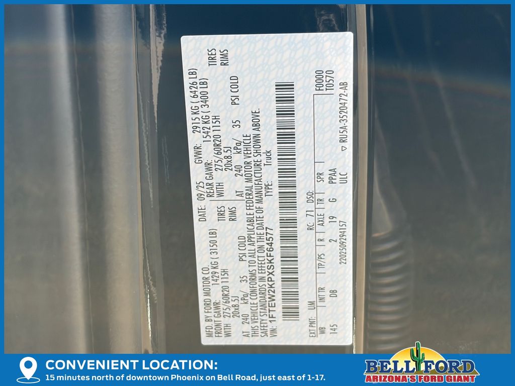 This Ford F-150 is equipped with the following options: Equipment Group 200A Mid (LED Fog Lamps w/LED Cornering Lamp and Wheels: 20" Dark Gray w/Machined Aluminum), GVWR: 6,426 lbs Payload Package, 3.55 Axle Ratio, 4-Wheel Disc Brakes, 6 Speakers, ABS brakes, Air Conditioning, Alloy wheels, AM/FM radio: SiriusXM with 360L, Auto High-beam Headlights, Brake assist, Bumpers: body-color, Compass, Delay-off headlights, Driver door bin, Dual front impact airbags, Dual front side impact airbags, Electronic Stability Control, Emergency communication system: SYNC 4 911 Assist, Front anti-roll bar, Front Bucket Seats, Front Center Armrest, Front reading lights, Front wheel independent suspension, Fully automatic headlights, Heated door mirrors, Illuminated entry, Internet access capable: FordPass Connect 5G, Low tire pressure warning, Occupant sensing airbag, Outside temperature display, Overhead airbag, Overhead console, Panic alarm, Passenger door bin, Passenger vanity mirror, Power door mirrors, Power steering, Power windows, Radio data system, Radio: AM/FM Stereo w/SiriusXM 360L, Rear Parking Sensors, Rear step bumper, Rear window defroster, Remote keyless entry, Security system, Speed control, Split folding rear seat, Steering wheel mounted audio controls, SYNC 4 w/Enhanced Voice Recognition, Tachometer, Telescoping steering wheel, Tilt steering wheel, Traction control, Trip computer, Variably intermittent wipers, Voltmeter, and Wheels: 18" Gloss Black. Price includes: $1000 - Final Days Mega Bonus Cash. Exp. 01/02/2026 $1250 - Retail Bonus Cash. Exp. 01/05/2026 $2000 - Retail Customer Cash. Exp. 01/05/2026