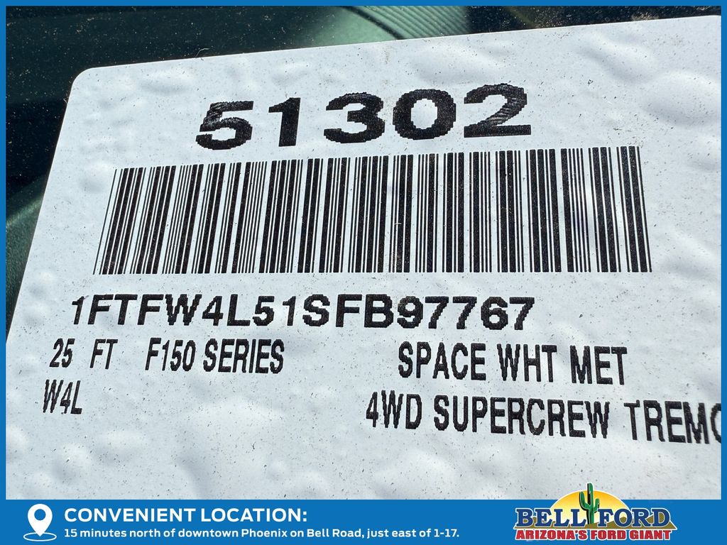 This Ford F-150 is equipped with the following options: Bed Utility Package (4 Pickup Box Tie-Down Plates, LED Box Lighting, and Power Tailgate), Equipment Group 402A High (2nd Row Heated Seats, Ambient Lighting, Auto-Dimming Rear-View Mirror, Front Axle w/Torsen Differential, Heads-Up Display, Heated Steering Wheel, LED Taillamps, Media Bin Door, Modular Front Bumper & Carbon Black Rear Bumper, Power Glass Heated Sideview Mirrors, Power-Adjustable Pedals w/Memory, Premium Wrapped Steering Wheel, Radio: B&O Unleashed Sound System by Bang & Olufsen, Rain-Sensing Wipers, Two-Speed Automatic AWD w/Mechanical Locking 4WD, Unique Tremor Leather-Trimmed Bucket Seats, and Universal Garage Door Opener), GVWR: 7,100 lbs Payload Package, Mobile Office Package (Console Worksurface, Partitioned Lockable Rear Storage, and Wireless Charging), Tow/Haul Package (Integrated Trailer Brake Controller), 4WD, 4-Wheel Disc Brakes, 8 Speakers, ABS brakes, Adjustable pedals, Air Conditioning, Alloy wheels, AM/FM radio: SiriusXM with 360L, Auto High-beam Headlights, Auto-dimming door mirrors, Auto-dimming Rear-View mirror, Automatic temperature control, Brake assist, Bumpers: body-color, Compass, Delay-off headlights, Driver door bin, Driver vanity mirror, Dual front impact airbags, Dual front side impact airbags, Electronic Locking w/3.73 Axle Ratio, Electronic Stability Control, Emergency communication system: SYNC 4 911 Assist, Front anti-roll bar, Front Bucket Seats, Front Center Armrest, Front dual zone A/C, Front fog lights, Front reading lights, Front wheel independent suspension, Fully automatic headlights, Heated door mirrors, Heated front seats, Illuminated entry, Internet access capable: FordPass Connect 5G, Low tire pressure warning, Navigation system: Connected Navigation, Occupant sensing airbag, Outside temperature display, Overhead airbag, Overhead console, Panic alarm, Passenger door bin, Passenger vanity mirror, Power door mirrors, Power driver seat, Power passenger seat, Power steering, Power windows, Radio data system, Radio: B&O Sound System by Bang & Olufsen, Rear reading lights, Rear step bumper, Rear window defroster, Remote keyless entry, Security system, Speed control, Split folding rear seat, Steering wheel mounted audio controls, SYNC 4 w/Enhanced Voice Recognition, Tachometer, Tailgate Step w/Tailgate Work Surface, Telescoping steering wheel, Tilt steering wheel, Traction control, Trip computer, Turn signal indicator mirrors, Twin Panel Moonroof, Unique Sport Cloth 40/Console/40 Power Front Seat, Variably intermittent wipers, Voltmeter, and Wheels: 18" Alloy w/Dark Matte Finish. Price includes: $2000 - Retail Customer Cash. Exp. 03/31/2026