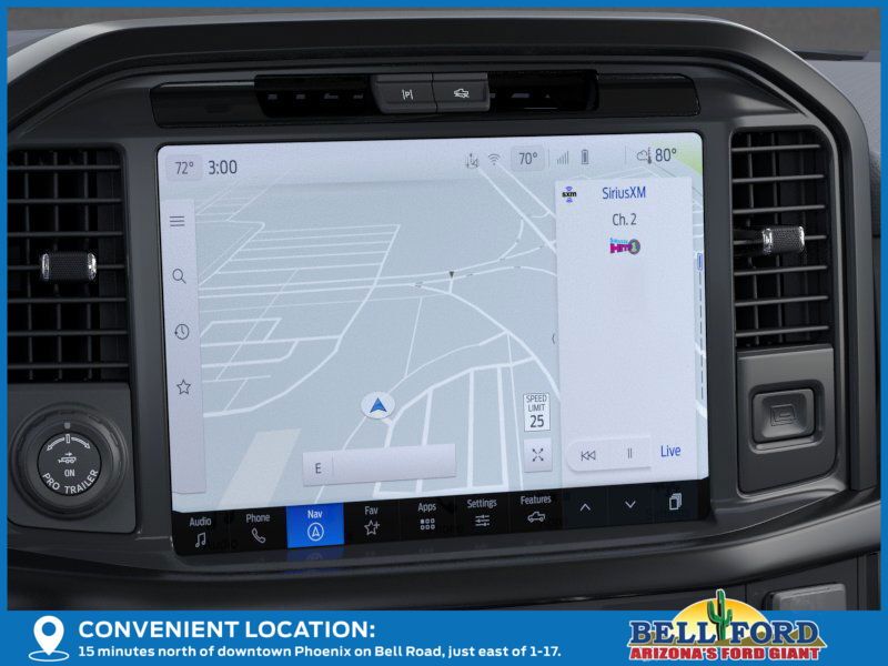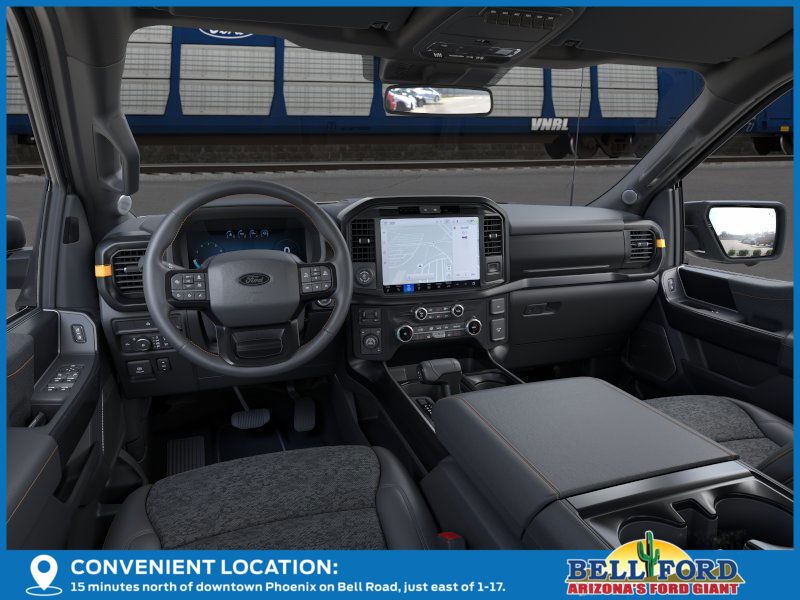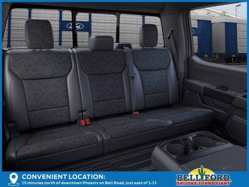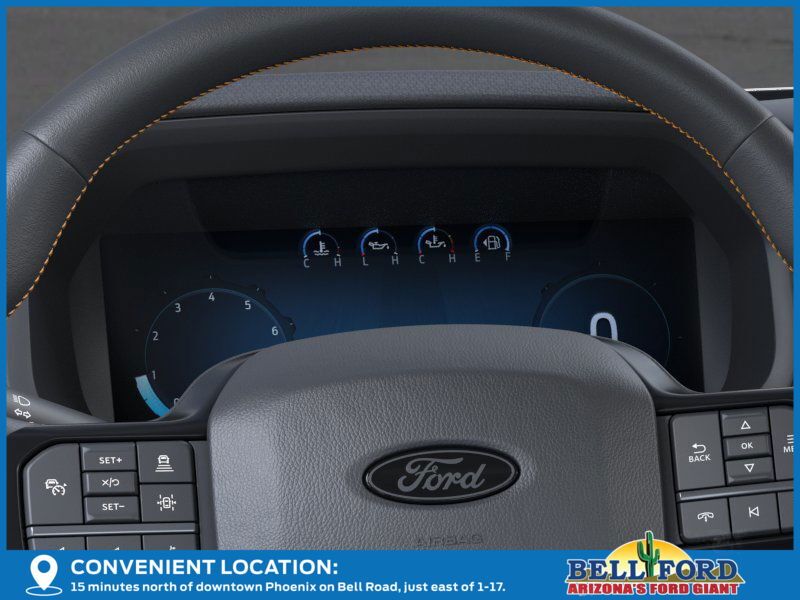 Bed Utility Package (4 Pickup Box Tie-Down Plates, LED Box Lighting, and Power Tailgate), Equipment Group 401A Standard, GVWR: 7,100 lbs Payload Package, Tow/Haul Package (Integrated Trailer Brake Controller), 4WD, 4-Wheel Disc Brakes, 8 Speakers, ABS brakes, Adjustable pedals, Air Conditioning, Alloy wheels, AM/FM radio: SiriusXM with 360L, Auto High-beam Headlights, Auto-dimming door mirrors, Auto-dimming Rear-View mirror, Automatic temperature control, Brake assist, Bumpers: body-color, Compass, Delay-off headlights, Driver door bin, Driver vanity mirror, Dual front impact airbags, Dual front side impact airbags, Electronic Locking w/3.73 Axle Ratio, Electronic Stability Control, Emergency communication system: SYNC 4 911 Assist, First Aid Kit w/Ford Logo, Front anti-roll bar, Front Bucket Seats, Front Center Armrest, Front dual zone A/C, Front fog lights, Front reading lights, Front wheel independent suspension, Fully automatic headlights, Heated door mirrors, Heated front seats, Illuminated entry, Low tire pressure warning, Navigation system: Connected Navigation, Occupant sensing airbag, Outside temperature display, Overhead airbag, Overhead console, Panic alarm, Passenger door bin, Passenger vanity mirror, Power door mirrors, Power driver seat, Power passenger seat, Power steering, Power windows, Radio data system, Radio: B&O Sound System by Bang & Olufsen, Rear reading lights, Rear step bumper, Rear window defroster, Remote keyless entry, Security system, Speed control, Split folding rear seat, Steering wheel mounted audio controls, SYNC 4 w/Enhanced Voice Recognition, Tachometer, Tailgate Step w/Tailgate Work Surface, Telescoping steering wheel, Tilt steering wheel, Traction control, Trip computer, Turn signal indicator mirrors, Unique Sport Cloth 40/Console/40 Power Front Seat, Variably intermittent wipers, Voltmeter, and Wheels: 18" Alloy w/Dark Matte Finish.