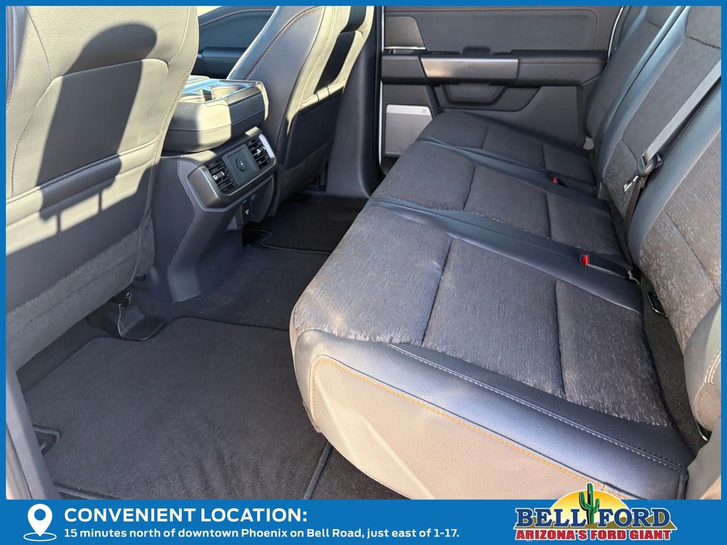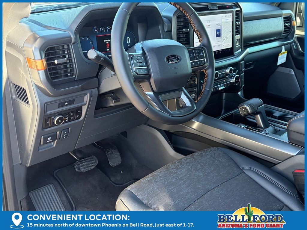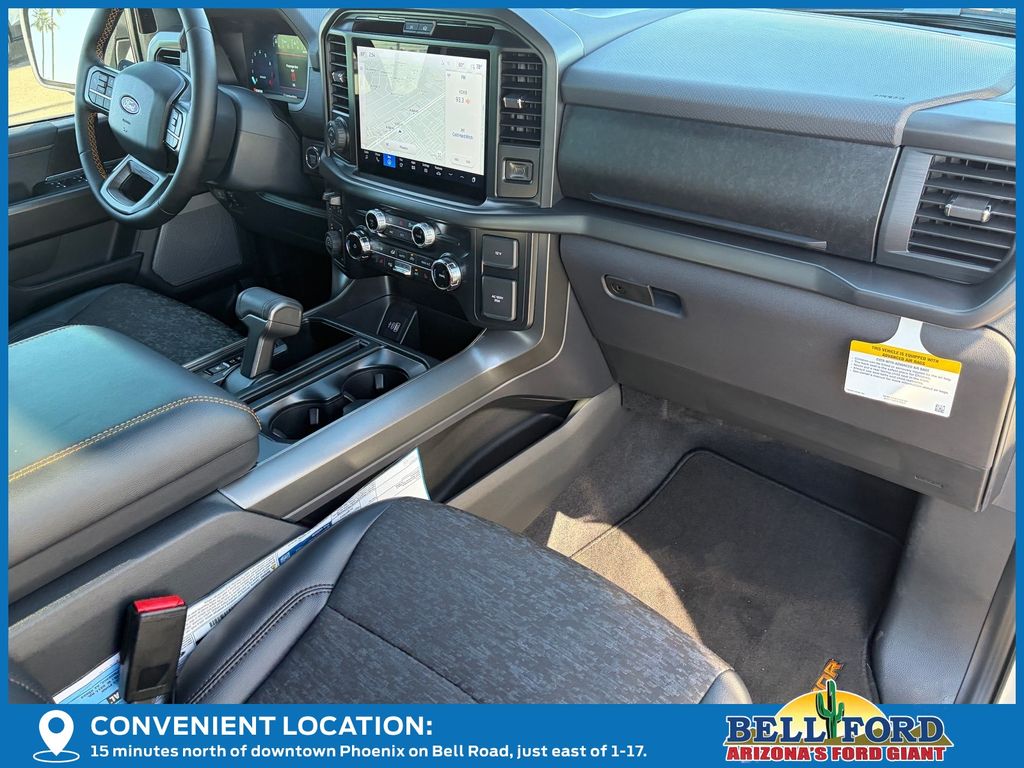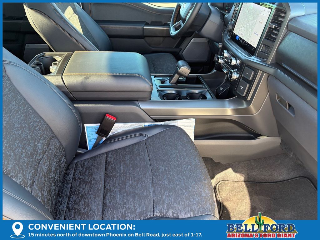 This Ford F-150 is equipped with the following options: Equipment Group 401A Standard, GVWR: 7,100 lbs Payload Package, Tow/Haul Package (Integrated Trailer Brake Controller), 4WD, 4-Wheel Disc Brakes, 8 Speakers, ABS brakes, Adjustable pedals, Air Conditioning, Alloy wheels, AM/FM radio: SiriusXM with 360L, Auto High-beam Headlights, Auto-dimming door mirrors, Auto-dimming Rear-View mirror, Automatic temperature control, Brake assist, Bumpers: body-color, Compass, Delay-off headlights, Driver door bin, Driver vanity mirror, Dual front impact airbags, Dual front side impact airbags, Electronic Locking w/3.73 Axle Ratio, Electronic Stability Control, Emergency communication system: SYNC 4 911 Assist, Front anti-roll bar, Front Bucket Seats, Front Center Armrest, Front dual zone A/C, Front fog lights, Front reading lights, Front wheel independent suspension, Fully automatic headlights, Heated door mirrors, Heated front seats, Illuminated entry, Low tire pressure warning, Navigation system: Connected Navigation, Occupant sensing airbag, Outside temperature display, Overhead airbag, Overhead console, Panic alarm, Passenger door bin, Passenger vanity mirror, Power door mirrors, Power driver seat, Power passenger seat, Power steering, Power windows, Radio data system, Radio: B&O Sound System by Bang & Olufsen, Rear reading lights, Rear step bumper, Rear window defroster, Remote keyless entry, Security system, Speed control, Split folding rear seat, Steering wheel mounted audio controls, SYNC 4 w/Enhanced Voice Recognition, Tachometer, Telescoping steering wheel, Tilt steering wheel, Traction control, Trip computer, Turn signal indicator mirrors, Unique Sport Cloth 40/Console/40 Power Front Seat, Variably intermittent wipers, Voltmeter, and Wheels: 18" Alloy w/Dark Matte Finish.