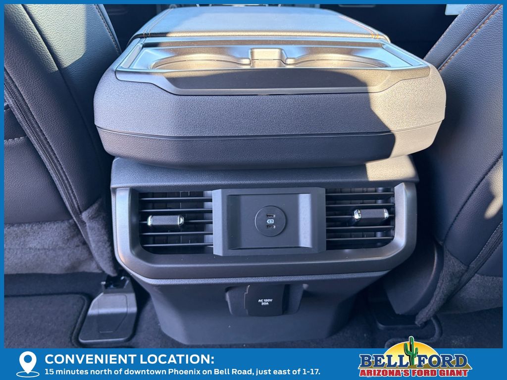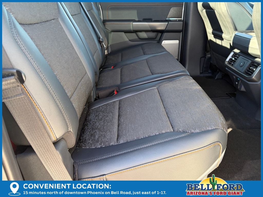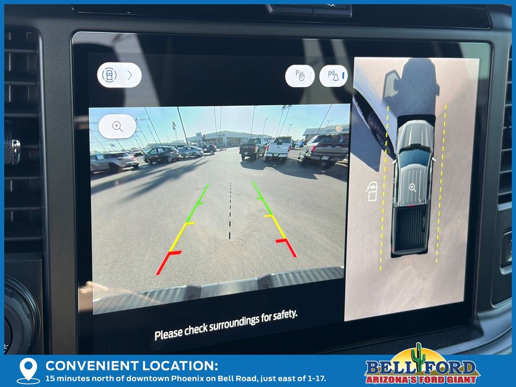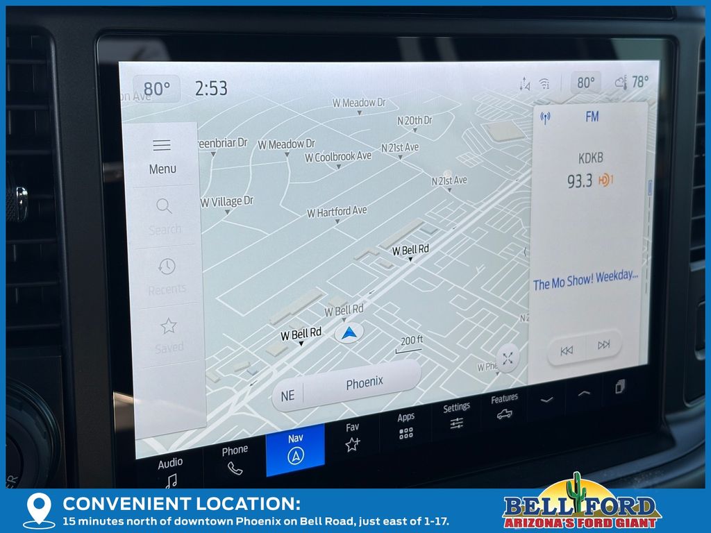 This Ford F-150 is equipped with the following options: Equipment Group 401A Standard, GVWR: 7,100 lbs Payload Package, Tow/Haul Package (Integrated Trailer Brake Controller), 4WD, 4-Wheel Disc Brakes, 8 Speakers, ABS brakes, Adjustable pedals, Air Conditioning, Alloy wheels, AM/FM radio: SiriusXM with 360L, Auto High-beam Headlights, Auto-dimming door mirrors, Auto-dimming Rear-View mirror, Automatic temperature control, Brake assist, Bumpers: body-color, Compass, Delay-off headlights, Driver door bin, Driver vanity mirror, Dual front impact airbags, Dual front side impact airbags, Electronic Locking w/3.73 Axle Ratio, Electronic Stability Control, Emergency communication system: SYNC 4 911 Assist, Front anti-roll bar, Front Bucket Seats, Front Center Armrest, Front dual zone A/C, Front fog lights, Front reading lights, Front wheel independent suspension, Fully automatic headlights, Heated door mirrors, Heated front seats, Illuminated entry, Low tire pressure warning, Navigation system: Connected Navigation, Occupant sensing airbag, Outside temperature display, Overhead airbag, Overhead console, Panic alarm, Passenger door bin, Passenger vanity mirror, Power door mirrors, Power driver seat, Power passenger seat, Power steering, Power windows, Radio data system, Radio: B&O Sound System by Bang & Olufsen, Rear reading lights, Rear step bumper, Rear window defroster, Remote keyless entry, Security system, Speed control, Split folding rear seat, Steering wheel mounted audio controls, SYNC 4 w/Enhanced Voice Recognition, Tachometer, Telescoping steering wheel, Tilt steering wheel, Traction control, Trip computer, Turn signal indicator mirrors, Unique Sport Cloth 40/Console/40 Power Front Seat, Variably intermittent wipers, Voltmeter, and Wheels: 18" Alloy w/Dark Matte Finish.