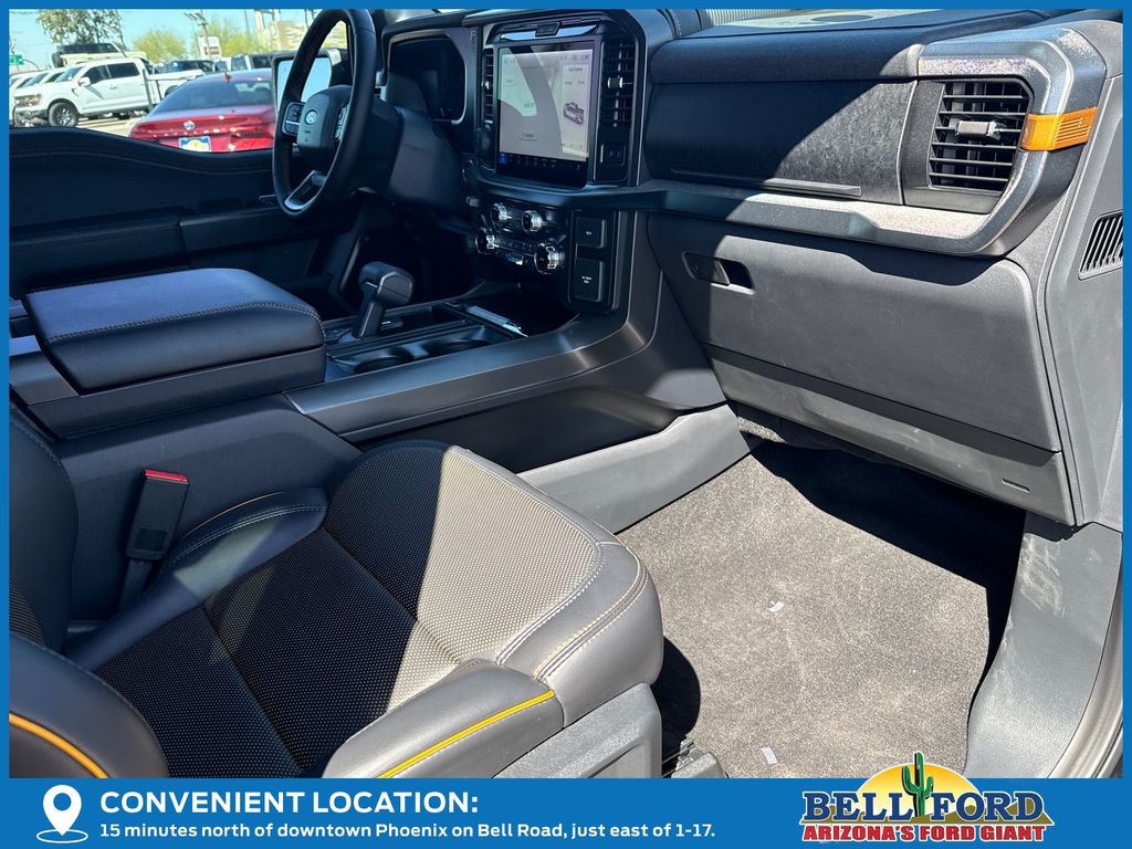 This Ford F-150 is equipped with the following options: Bed Utility Package (4 Pickup Box Tie-Down Plates, LED Box Lighting, and Power Tailgate), Equipment Group 402A High (2nd Row Heated Seats, Ambient Lighting, Auto-Dimming Rear-View Mirror, Front Axle w/Torsen Differential, Heads-Up Display, Heated Steering Wheel, LED Taillamps, Media Bin Door, Modular Front Bumper & Carbon Black Rear Bumper, Power Glass Heated Sideview Mirrors, Power-Adjustable Pedals w/Memory, Premium Wrapped Steering Wheel, Radio: B&O Unleashed Sound System by Bang & Olufsen, Rain-Sensing Wipers, Two-Speed Automatic AWD w/Mechanical Locking 4WD, Unique Tremor Leather-Trimmed Bucket Seats, and Universal Garage Door Opener), GVWR: 7,100 lbs Payload Package, Mobile Office Package (Console Worksurface, Partitioned Lockable Rear Storage, and Wireless Charging), Tow/Haul Package (Integrated Trailer Brake Controller), 4WD, 4-Wheel Disc Brakes, 8 Speakers, ABS brakes, Adjustable pedals, Air Conditioning, Alloy wheels, AM/FM radio: SiriusXM with 360L, Auto High-beam Headlights, Auto-dimming door mirrors, Auto-dimming Rear-View mirror, Automatic temperature control, Brake assist, Bumpers: body-color, Compass, Delay-off headlights, Driver door bin, Driver vanity mirror, Dual front impact airbags, Dual front side impact airbags, Electronic Locking w/3.73 Axle Ratio, Electronic Stability Control, Emergency communication system: SYNC 4 911 Assist, Front anti-roll bar, Front Bucket Seats, Front Center Armrest, Front dual zone A/C, Front fog lights, Front reading lights, Front wheel independent suspension, Fully automatic headlights, Heated door mirrors, Heated front seats, Illuminated entry, Internet access capable: FordPass Connect 5G, Low tire pressure warning, Navigation system: Connected Navigation, Occupant sensing airbag, Outside temperature display, Overhead airbag, Overhead console, Panic alarm, Passenger door bin, Passenger vanity mirror, Power door mirrors, Power driver seat, Power passenger seat, Power steering, Power windows, Radio data system, Radio: B&O Sound System by Bang & Olufsen, Rear reading lights, Rear step bumper, Rear window defroster, Remote keyless entry, Security system, Speed control, Split folding rear seat, Steering wheel mounted audio controls, SYNC 4 w/Enhanced Voice Recognition, Tachometer, Tailgate Step w/Tailgate Work Surface, Telescoping steering wheel, Tilt steering wheel, Traction control, Trip computer, Turn signal indicator mirrors, Unique Sport Cloth 40/Console/40 Power Front Seat, Variably intermittent wipers, Voltmeter, and Wheels: 18" Alloy w/Dark Matte Finish. Price includes: $1000 - Truck Month Retail Bonus Cash. Exp. 03/31/2026 $2000 - Retail Customer Cash. Exp. 03/31/2026 Price includes dealer added accessories totaling $23,440.