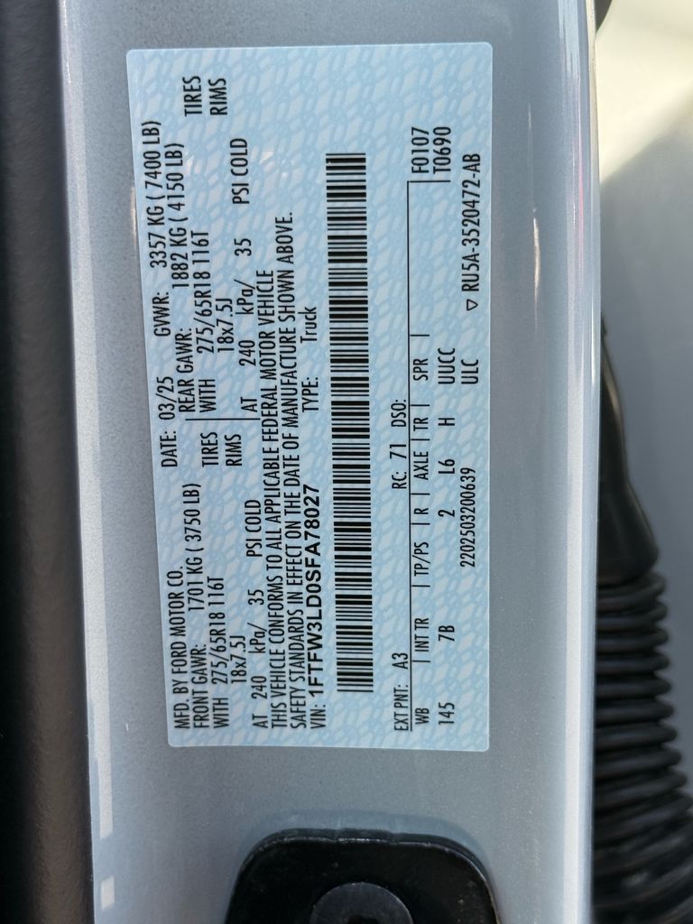 - VIN : 1FTFW3LD0SFA78027