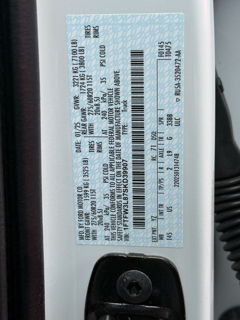 - VIN : 1FTFW3L87SKD39907
