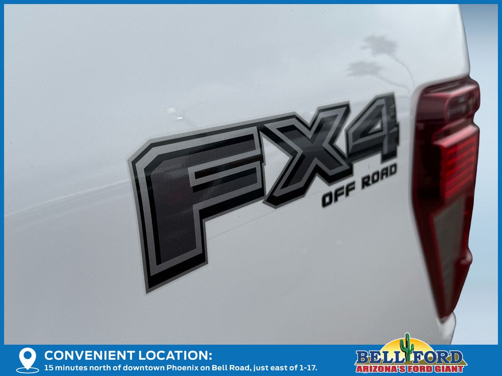Bed Utility Package (4 Pickup Box Tie-Down Plates, LED Box Lighting, and Tailgate Step w/Tailgate Work Surface), Equipment Group 302A Mid, FX4 Off-Road Package, Mobile Office Package (Console Worksurface and Partitioned Lockable Rear Storage), Tow/Haul Package, 4WD, 4-Wheel Disc Brakes, 6 Speakers, ABS brakes, Air Conditioning, Alloy wheels, AM/FM radio: SiriusXM with 360L, Auto High-beam Headlights, Brake assist, Bumpers: chrome, Chrome wheels, Cloth 40/20/40 Front Seat, Compass, Delay-off headlights, Driver door bin, Driver vanity mirror, Dual front impact airbags, Dual front side impact airbags, Electronic Stability Control, Emergency communication system: SYNC 4 911 Assist, Front anti-roll bar, Front Center Armrest, Front fog lights, Front License Plate Bracket, Front reading lights, Front wheel independent suspension, Fully automatic headlights, Heated door mirrors, Illuminated entry, Low tire pressure warning, Occupant sensing airbag, Outside temperature display, Overhead airbag, Overhead console, Panic alarm, Passenger door bin, Passenger vanity mirror, Power door mirrors, Power steering, Power windows, Radio data system, Radio: AM/FM Stereo w/SiriusXM 360L, Rear Parking Sensors, Rear reading lights, Rear step bumper, Rear window defroster, Remote keyless entry, Security system, Speed control, Split folding rear seat, Steering wheel mounted audio controls, SYNC 4 w/Enhanced Voice Recognition, Tachometer, Telescoping steering wheel, Tilt steering wheel, Tough Bed Spray-In Bedliner, Traction control, Trip computer, Variably intermittent wipers, Voltmeter, Wheels: 18" Chrome-Like PVD, and Wheels: 20" Chrome-Like PVD.