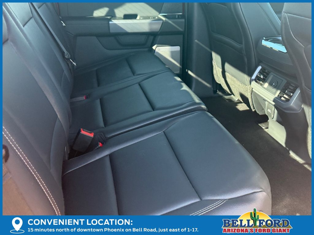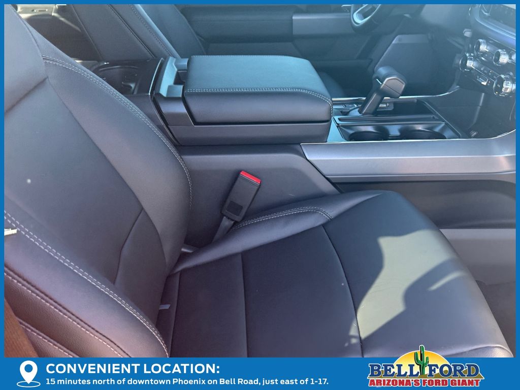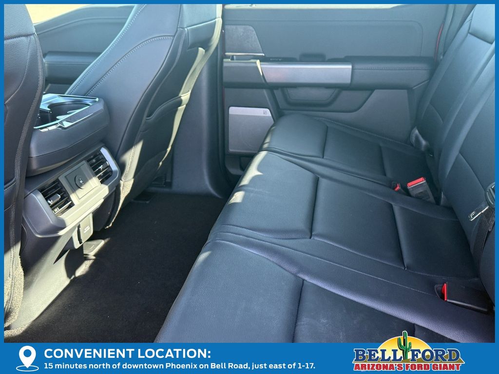 This Ford F-150 is equipped with the following options: Equipment Group 303A High, FX4 Off-Road Package, Mobile Office Package (Console Worksurface and Partitioned Lockable Rear Storage), Tow/Haul Package, 4WD, 4-Wheel Disc Brakes, 6 Speakers, ABS brakes, Air Conditioning, Alloy wheels, AM/FM radio: SiriusXM with 360L, Auto High-beam Headlights, Brake assist, Bumpers: chrome, Chrome wheels, Cloth 40/20/40 Front Seat, Compass, Delay-off headlights, Driver door bin, Driver vanity mirror, Dual front impact airbags, Dual front side impact airbags, Electronic Stability Control, Emergency communication system: SYNC 4 911 Assist, Front anti-roll bar, Front Center Armrest, Front fog lights, Front reading lights, Front wheel independent suspension, Fully automatic headlights, Heated door mirrors, Illuminated entry, Internet access capable: FordPass Connect 5G, Low tire pressure warning, Occupant sensing airbag, Outside temperature display, Overhead airbag, Overhead console, Panic alarm, Passenger door bin, Passenger vanity mirror, Power door mirrors, Power steering, Power windows, Radio data system, Radio: AM/FM Stereo w/SiriusXM 360L, Rear Parking Sensors, Rear reading lights, Rear step bumper, Rear window defroster, Remote keyless entry, Security system, Speed control, Split folding rear seat, Steering wheel mounted audio controls, SYNC 4 w/Enhanced Voice Recognition, Tachometer, Telescoping steering wheel, Tilt steering wheel, Traction control, Trip computer, Variably intermittent wipers, Voltmeter, and Wheels: 18" Chrome-Like PVD.