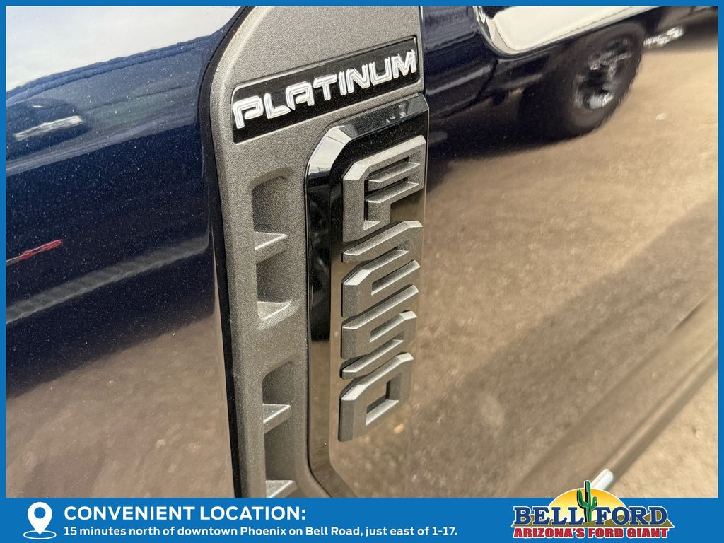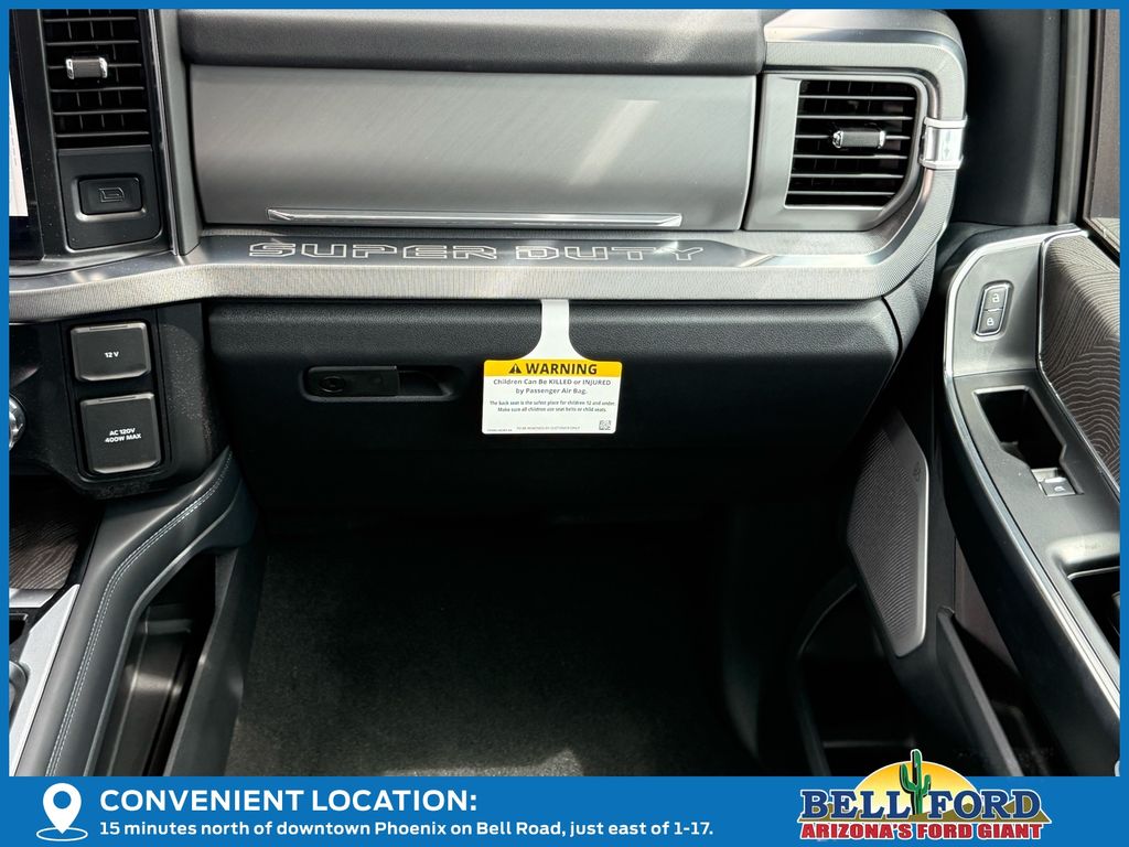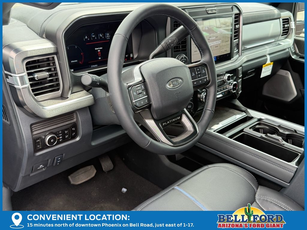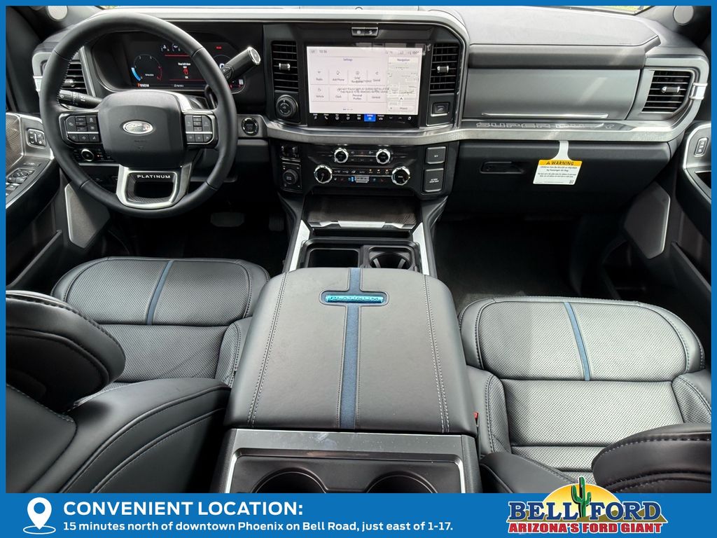 F-250 >10K GVWR Package, FX4 Off-Road Package (Hill Descent Control, Off-Road Specifically Tuned Shock Absorbers, and Unique FX4 Off-Road Box Decal), High Capacity 11.6" Axle Upgrade Package, Order Code 703A, 4WD, 14 Speakers, 4-Wheel Disc Brakes, 410 Amp Dual Alternators, ABS brakes, Adjustable pedals, Air Conditioning, Alloy wheels, AM/FM radio: SiriusXM with 360L, Auto High-beam Headlights, Auto tilt-away steering wheel, Auto-dimming Rear-View mirror, Automatic temperature control, Brake assist, Bumpers: body-color, Compass, Delay-off headlights, Driver door bin, Driver vanity mirror, Dual front impact airbags, Dual front side impact airbags, Electronic Stability Control, Emergency communication system: SYNC 4 911 Assist, Engine Block Heater, Flow-Through Console, Front anti-roll bar, Front Bucket Seats, Front Center Armrest, Front dual zone A/C, Front fog lights, Front reading lights, Fully automatic headlights, Garage door transmitter, Heads-Up Display, Heated door mirrors, Heated front seats, Heated rear seats, Heated steering wheel, Illuminated entry, Leather steering wheel, Low tire pressure warning, Max Recline Seats, Memory seat, Navigation System, Outside temperature display, Overhead airbag, Overhead console, Panic alarm, Passenger door bin, Passenger vanity mirror, Pedal memory, Power door mirrors, Power driver seat, Power passenger seat, Power steering, Power windows, Radio: B&O Unleashed Sound System by Bang & Olufsen, Rain sensing wipers, Rapid-Heat Supplemental Cab Heater, Rear reading lights, Rear seat center armrest, Rear step bumper, Rear window defroster, Remote keyless entry, Security system, SiriusXM Radio w/360L, Speed control, Split folding rear seat, Steering wheel memory, Steering wheel mounted A/C controls, Steering wheel mounted audio controls, SYNC 4 w/Enhanced Voice Recognition, Tachometer, Telescoping steering wheel, Tilt steering wheel, Traction control, Trip computer, Turn signal indicator mirrors, Twin Panel Power Moonroof, Unique Platinum Leather 40/Console/40 Seats, Upfitter Switches (6), Variably intermittent wipers, Ventilated front seats, and Wheels: 20" Bright Machined & Painted Aluminum.