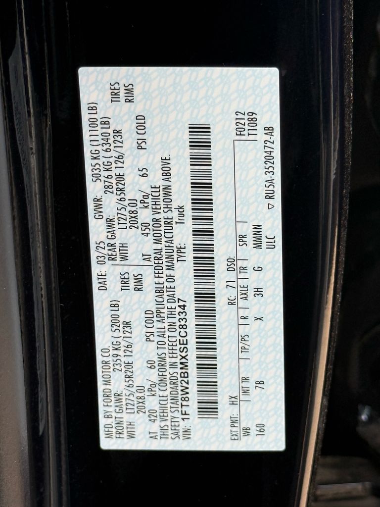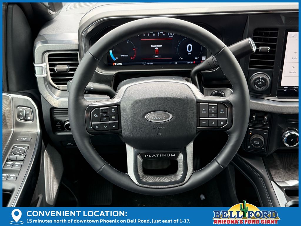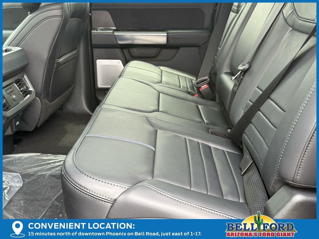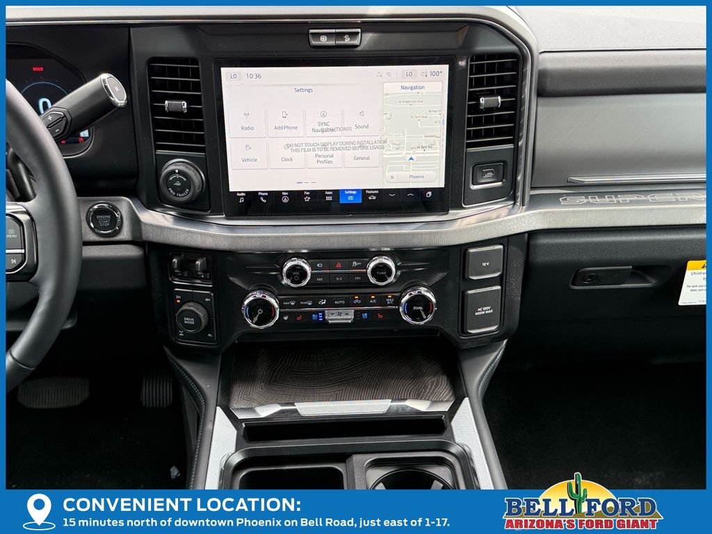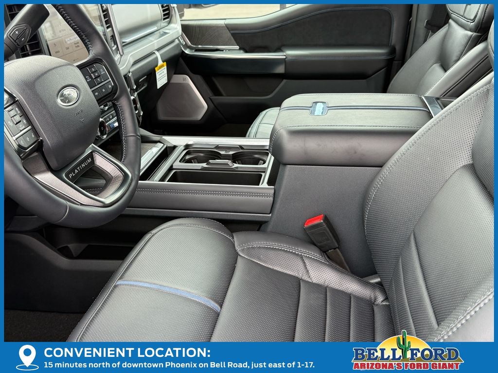 F-250 >10K GVWR Package, FX4 Off-Road Package (Hill Descent Control, Off-Road Specifically Tuned Shock Absorbers, and Unique FX4 Off-Road Box Decal), High Capacity 11.6" Axle Upgrade Package, Order Code 703A, 4WD, 14 Speakers, 4-Wheel Disc Brakes, 410 Amp Dual Alternators, ABS brakes, Adjustable pedals, Air Conditioning, Alloy wheels, AM/FM radio: SiriusXM with 360L, Auto High-beam Headlights, Auto tilt-away steering wheel, Auto-dimming Rear-View mirror, Automatic temperature control, Brake assist, Bumpers: body-color, Compass, Delay-off headlights, Driver door bin, Driver vanity mirror, Dual front impact airbags, Dual front side impact airbags, Electronic Stability Control, Emergency communication system: SYNC 4 911 Assist, Engine Block Heater, Flow-Through Console, Front anti-roll bar, Front Bucket Seats, Front Center Armrest, Front dual zone A/C, Front fog lights, Front reading lights, Fully automatic headlights, Garage door transmitter, Heads-Up Display, Heated door mirrors, Heated front seats, Heated rear seats, Heated steering wheel, Illuminated entry, Leather steering wheel, Low tire pressure warning, Max Recline Seats, Memory seat, Navigation System, Outside temperature display, Overhead airbag, Overhead console, Panic alarm, Passenger door bin, Passenger vanity mirror, Pedal memory, Power door mirrors, Power driver seat, Power passenger seat, Power steering, Power windows, Radio: B&O Unleashed Sound System by Bang & Olufsen, Rain sensing wipers, Rapid-Heat Supplemental Cab Heater, Rear reading lights, Rear seat center armrest, Rear step bumper, Rear window defroster, Remote keyless entry, Security system, SiriusXM Radio w/360L, Speed control, Split folding rear seat, Steering wheel memory, Steering wheel mounted A/C controls, Steering wheel mounted audio controls, SYNC 4 w/Enhanced Voice Recognition, Tachometer, Telescoping steering wheel, Tilt steering wheel, Traction control, Trip computer, Turn signal indicator mirrors, Twin Panel Power Moonroof, Unique Platinum Leather 40/Console/40 Seats, Upfitter Switches (6), Variably intermittent wipers, Ventilated front seats, and Wheels: 20" Bright Machined & Painted Aluminum.