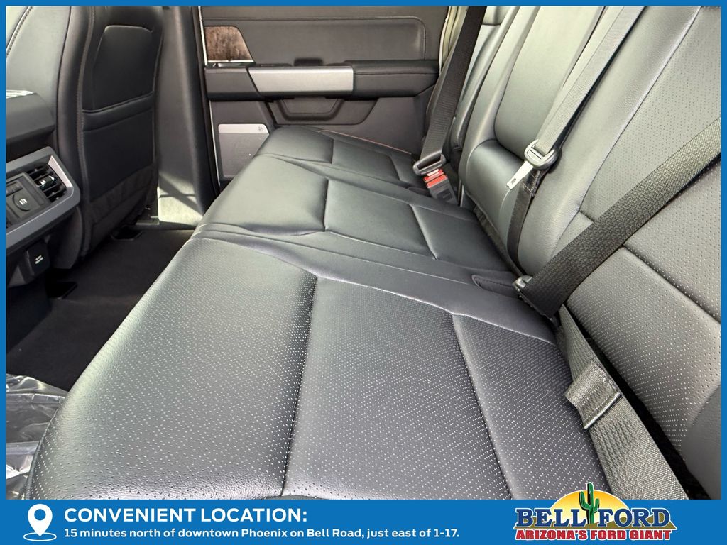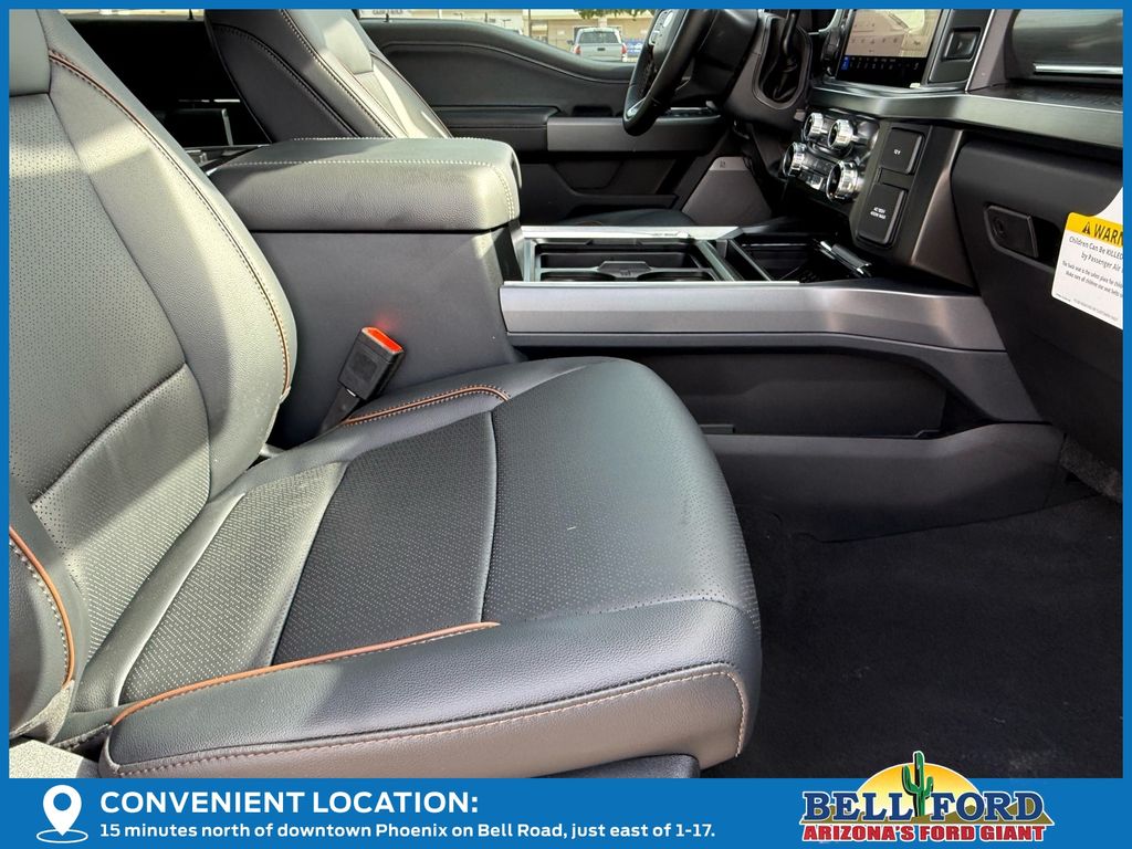 Black Appearance Package (6" Ebony Black Angular Running Boards, Black Painted Front Grille Surround, Body Color Front & Rear Bumpers, Ebony Black Painted Mirror Caps, Rear Wheel Well Liners (Pre-Installed), Tough Bed Spray-In Bedliner, and Wheels: 20" Machined & Ebony Black High Gloss), Lariat Ultimate Package (4-Way Adjustable Headrests, Head-Up Display, Power-Deployable Running Boards, Power-Sliding Rear-Window w/Defrost, Privacy Glass, Pro Trailer Backup Assist, Pro Trailer Hitch Assist, Radio: B&O Unleashed Sound System by Bang & Olufsen, SiriusXM Radio w/360L, SYNC 4 w/Enhanced Voice Recognition, and Tailgate Step & Handle), Order Code 618A, 4WD, 190 Amp Alternator, 4-Wheel Disc Brakes, 410 Amp Dual Alternators, 8 Speakers, ABS brakes, Adaptive Cruise Control w/Stop-and-Go, Adjustable pedals, Air Conditioning, Alloy wheels, AM/FM radio: SiriusXM with 360L, Auto High-beam Headlights, Auto-dimming Rear-View mirror, Automatic High Beam, Automatic temperature control, BLIS w/Cross-Traffic Alert, Brake assist, Bumpers: chrome, Compass, Delay-off headlights, Driver door bin, Driver vanity mirror, Dual AGM 68 AH Battery, Dual front impact airbags, Dual front side impact airbags, Electronic Stability Control, Emergency communication system: SYNC 4 911 Assist, Engine Block Heater, Flow-Through Console, Front & Rear Parking Sensors, Front ActiveX Trimmed 40/Console/40 Seats, Front anti-roll bar, Front Bucket Seats, Front Center Armrest, Front dual zone A/C, Front fog lights, Front reading lights, Fully automatic headlights, Garage door transmitter, Heated door mirrors, Heated front seats, Heated rear seats, Heated steering wheel, Illuminated entry, Lane-Keeping System, Low tire pressure warning, Memory seat, Navigation System, Outside temperature display, Overhead airbag, Overhead console, Panic alarm, Passenger door bin, Passenger vanity mirror, Pedal memory, Post-Collision Braking, Power door mirrors, Power driver seat, Power passenger seat, Power steering, Power windows, Pre-Collision Assist, Radio: B&O Sound System by Bang & Olufsen, Rain sensing wipers, Rapid-Heat Supplemental Cab Heater, Rear Parking Sensors, Rear reading lights, Rear seat center armrest, Rear step bumper, Rear window defroster, Remote keyless entry, Security system, Speed control, Split folding rear seat, Steering wheel mounted audio controls, Tachometer, Telescoping steering wheel, Tilt steering wheel, Traction control, Trip computer, Turn signal indicator mirrors, Twin Panel Power Moonroof, Upfitter Switches (6), Variably intermittent wipers, Ventilated front seats, and Wheels: 18" Bright Machined & Carbonized Gray Alum.