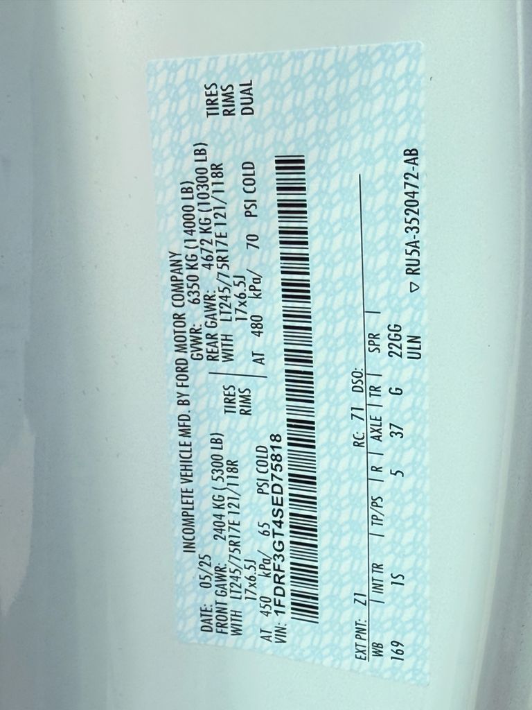 This Ford F-350SD is equipped with the following options: GVWR: 14,000 lb Payload Package, Order Code 640A, XL Chrome Package (Bright Grille, Chrome Front Bumper, Halogen Fog Lamps, and Remote Start), 120V/400W Outlet, 17" Argent Painted Steel Wheels, 190 Amp Alternator, 3.73 Axle Ratio, 4 Speakers, 4-Ton Hydraulic Jack, 4-Wheel Disc Brakes, 410 Amp Dual Alternators, ABS brakes, Air Conditioning, AM/FM radio, AM/FM Stereo w/MP3 Player, Brake assist, Compass, Delay-off headlights, Dual 68 AH/65 AGM Battery, Dual front impact airbags, Dual front side impact airbags, Dual rear wheels, Emergency communication system: SYNC 4 911 Assist, Front anti-roll bar, Front Center Armrest w/Storage, Front reading lights, Front wheel independent suspension, Fully automatic headlights, HD Vinyl 40/20/40 Split Bench Seat, Heated door mirrors, Illuminated entry, Internet access capable: FordPass Connect 5G, Low tire pressure warning, Outside temperature display, Overhead airbag, Overhead console, Panic alarm, Passenger cancellable airbag, Passenger vanity mirror, Platform Running Boards, Power door mirrors, Power steering, Power windows, Rear anti-roll bar, Rear View Camera & Prep Kit, Remote keyless entry, Security system, Speed control, Steering wheel mounted audio controls, SYNC 4 Communication & Entertainment System, Tachometer, Telescoping steering wheel, Tilt steering wheel, Traction control, Trip computer, Turn signal indicator mirrors, and Variably intermittent wipers. Price includes: $2000 - Retail Customer Cash. Exp. 03/31/2026