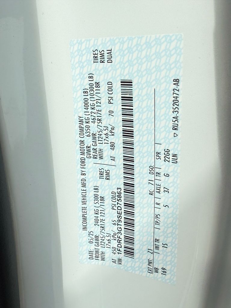 - VIN : 1FDRF3GT9SED75863