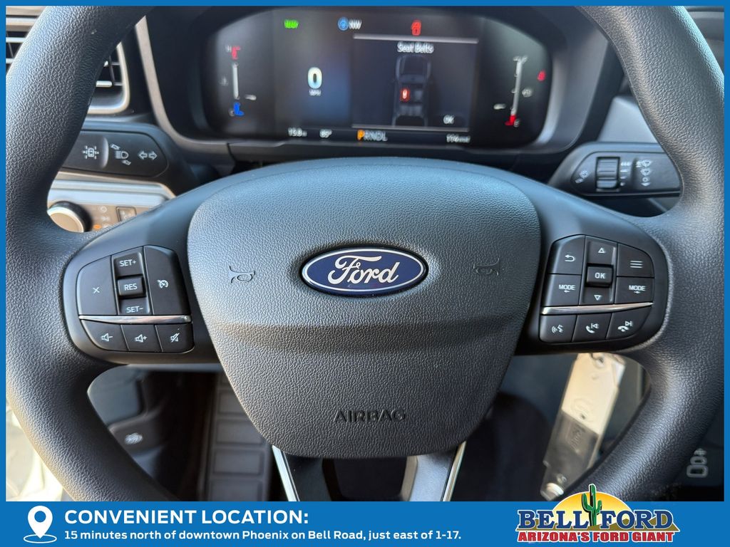 4K Tow Package (Trailer Brake Controller, Trailer Hitch (Class III) 2" Receiver, Transmission Oil Cooler, and Upgraded Cooling Fan), Equipment Group 101A, Ford Co-Pilot360 1.0 (Auto High Beams, BLIS w/Cross-Traffic Alert, Cross Traffic Brake Assist, Evasive Steering Assist, Intersection Assist, Lane-Keeping System, Power Glass Manual-Folding Mirrors, Pre-Collision Assist w/Automatic Emergency Braking, Rear Parking Sensors, and Rear-View Camera), 2.5L I-4 Hybrid, 2.91 Axle Ratio, 4-Wheel Disc Brakes, 6 Speakers, ABS brakes, Air Conditioning, AM/FM radio: SiriusXM with 360L, Apple CarPlay/Android Auto, Auto High-beam Headlights, Automatic temperature control, Brake assist, Bumpers: body-color, Compass, Delay-off headlights, Driver door bin, Driver vanity mirror, Dual front impact airbags, Dual front side impact airbags, Electronic Stability Control, Emergency communication system: SYNC 4 911 Assist, Exterior Parking Camera Rear, Four wheel independent suspension, Front anti-roll bar, Front Bucket Seats, Front Center Armrest, Front Cloth Bucket Seats, Front reading lights, Fully automatic headlights, Illuminated entry, Knee airbag, Low tire pressure warning, Occupant sensing airbag, Outside temperature display, Overhead airbag, Overhead console, Panic alarm, Passenger door bin, Passenger vanity mirror, Power steering, Power windows, Radio data system, Radio: AM/FM Stereo w/6 Speakers, Rear anti-roll bar, Rear step bumper, Remote keyless entry, SiriusXM w/360L, Speed control, Speed-sensing steering, Steering wheel mounted audio controls, SYNC 4 w/Enhanced Voice Recognition, Telescoping steering wheel, Tilt steering wheel, Traction control, Trip computer, and Wheels: 17" Steel w/Sparkle Silver Painted Cover.