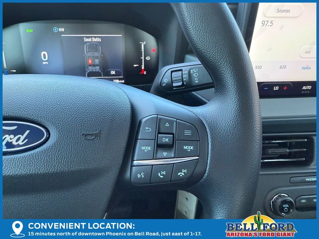 Equipment Group 101A, 2.5L I-4 Hybrid, 2.91 Axle Ratio, 2K Trailer Hitch Receiver w/4-Pin Connector, 4-Wheel Disc Brakes, 6 Speakers, ABS brakes, Air Conditioning, AM/FM radio: SiriusXM with 360L, Apple CarPlay/Android Auto, Auto High Beams, Auto High-beam Headlights, Automatic temperature control, Brake assist, Bumpers: body-color, Compass, Delay-off headlights, Driver door bin, Driver vanity mirror, Dual front impact airbags, Dual front side impact airbags, Electronic Stability Control, Emergency communication system: SYNC 4 911 Assist, Exterior Parking Camera Rear, Four wheel independent suspension, Front anti-roll bar, Front Bucket Seats, Front Center Armrest, Front Cloth Bucket Seats, Front reading lights, Fully automatic headlights, Illuminated entry, Knee airbag, Low tire pressure warning, Occupant sensing airbag, Outside temperature display, Overhead airbag, Overhead console, Panic alarm, Passenger door bin, Passenger vanity mirror, Power steering, Power windows, Pre-Collision Assist w/Automatic Emergency Braking, Radio data system, Radio: AM/FM Stereo w/6 Speakers, Rear anti-roll bar, Rear step bumper, Rear-View Camera, Remote keyless entry, SiriusXM w/360L, Speed control, Speed-sensing steering, Steering wheel mounted audio controls, SYNC 4 w/Enhanced Voice Recognition, Telescoping steering wheel, Tilt steering wheel, Traction control, Trip computer, and Wheels: 17" Steel w/Sparkle Silver Painted Cover.