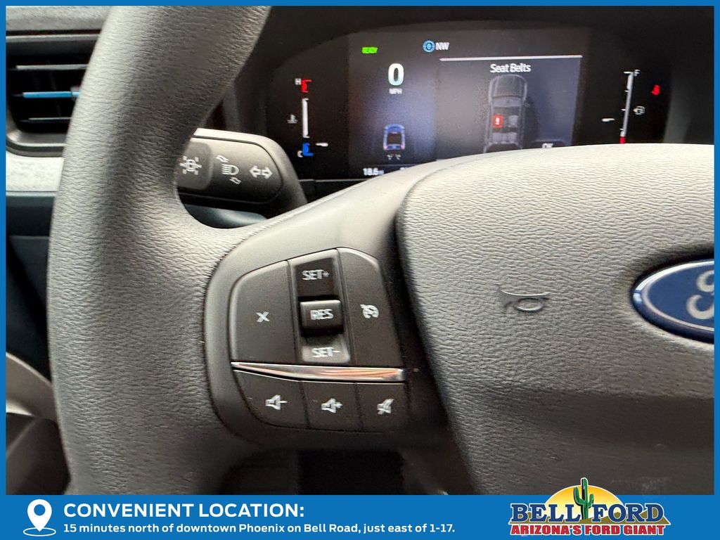 Equipment Group 300A, 2.5L I-4 Hybrid, 2.91 Axle Ratio, 4-Wheel Disc Brakes, 6 Speakers, ABS brakes, Air Conditioning, Alloy wheels, AM/FM radio: SiriusXM with 360L, Apple CarPlay/Android Auto, Auto High Beams, Auto High-beam Headlights, Automatic temperature control, Brake assist, Bumpers: body-color, Compass, Delay-off headlights, Driver door bin, Driver vanity mirror, Dual front impact airbags, Dual front side impact airbags, Electronic Stability Control, Emergency communication system: SYNC 4 911 Assist, Exterior Parking Camera Rear, Front anti-roll bar, Front Bucket Seats, Front Center Armrest, Front reading lights, Front wheel independent suspension, Fully automatic headlights, Illuminated entry, Knee airbag, Low tire pressure warning, Occupant sensing airbag, Outside temperature display, Overhead airbag, Overhead console, Panic alarm, Passenger door bin, Passenger vanity mirror, Power door mirrors, Power steering, Power windows, Pre-Collision Assist w/Automatic Emergency Braking, Radio data system, Radio: AM/FM Stereo w/6 Speakers, Rear anti-roll bar, Rear seat center armrest, Rear step bumper, Rear-View Camera, Remote keyless entry, Security system, SiriusXM w/360L, Speed control, Speed-sensing steering, Steering wheel mounted audio controls, SYNC 4 w/Enhanced Voice Recognition, Telescoping steering wheel, Tilt steering wheel, Traction control, Trip computer, Unique Cloth Front Bucket Seats, and Wheels: 17" Carbonized Gray Painted Aluminum.