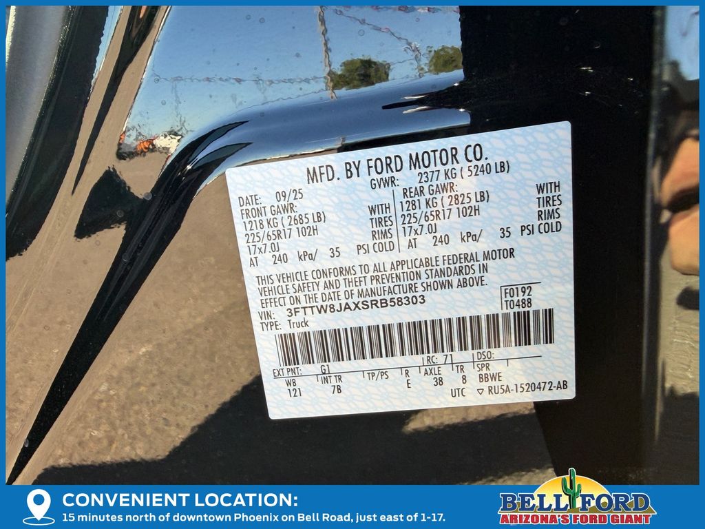 4K Tow Package (Trailer Brake Controller, Trailer Hitch (Class III) 2" Receiver, Transmission Oil Cooler, and Upgraded Cooling Fan), Equipment Group 302A, Ford Co-Pilot360 1.0 (Auto High Beams, BLIS w/Cross-Traffic Alert, Cross Traffic Brake Assist, Evasive Steering Assist, Intersection Assist, Lane-Keeping System, Power Glass Manual-Folding Mirrors, Pre-Collision Assist w/Automatic Emergency Braking, Rear Parking Sensors, and Rear-View Camera), XLT Luxury Package (400W Inverter w/USB Console Rear, Heated Mirror w/Painted Black Skull Caps, Heated Seats, LED Box Lighting, Remote Start System, and Soft Vinyl Wrapped Heated Steering Wheel), 2.91 Axle Ratio, 4-Wheel Disc Brakes, 6 Speakers, ABS brakes, Air Conditioning, Alloy wheels, AM/FM radio: SiriusXM with 360L, Apple CarPlay/Android Auto, Auto High-beam Headlights, Automatic temperature control, Brake assist, Bumpers: body-color, Compass, Delay-off headlights, Driver door bin, Driver vanity mirror, Dual front impact airbags, Dual front side impact airbags, Electronic Stability Control, Emergency communication system: SYNC 4 911 Assist, Exterior Parking Camera Rear, Four wheel independent suspension, Front anti-roll bar, Front Bucket Seats, Front Center Armrest, Front reading lights, Fully automatic headlights, Illuminated entry, Knee airbag, Low tire pressure warning, Occupant sensing airbag, Outside temperature display, Overhead airbag, Overhead console, Panic alarm, Passenger door bin, Passenger vanity mirror, Power door mirrors, Power steering, Power windows, Radio data system, Radio: AM/FM Stereo w/6 Speakers, Rear anti-roll bar, Rear seat center armrest, Rear step bumper, Remote keyless entry, Security system, SiriusXM w/360L, Speed control, Speed-sensing steering, Steering wheel mounted audio controls, SYNC 4 w/Enhanced Voice Recognition, Telescoping steering wheel, Tilt steering wheel, Traction control, Trip computer, Unique Cloth Front Bucket Seats, and Wheels: 17" Carbonized Gray Painted Aluminum. Price includes: $2000 - Retail Customer Cash. Exp. 12/17/2025