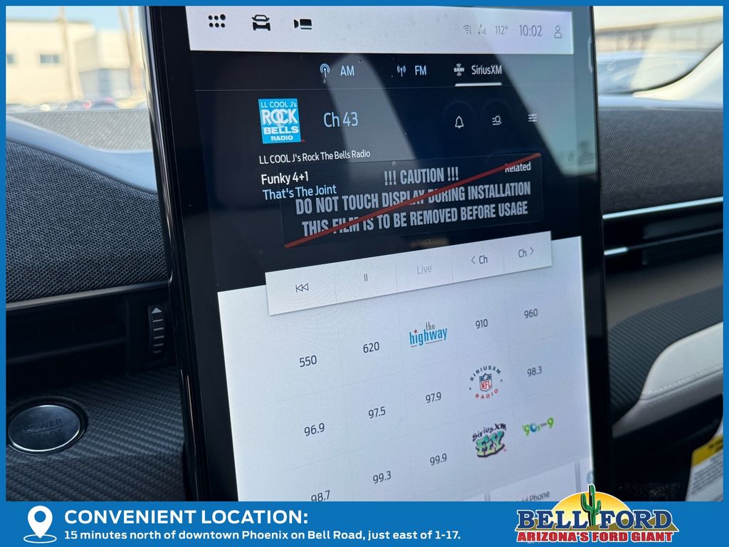 Equipment Group 300A Standard Package, 10 Speakers, 4-Wheel Disc Brakes, ABS brakes, Air Conditioning, Alloy wheels, AM/FM radio: SiriusXM with 360L, Apple CarPlay/Android Auto, Auto High-beam Headlights, Auto-dimming Rear-View mirror, Automatic temperature control, Brake assist, Bumpers: body-color, Compass, Delay-off headlights, Driver door bin, Driver vanity mirror, Dual front impact airbags, Dual front side impact airbags, Electronic Stability Control, Emergency communication system: 911 Assist, Exterior Parking Camera Rear, Four wheel independent suspension, Front anti-roll bar, Front Bucket Seats, Front Center Armrest, Front dual zone A/C, Front reading lights, Fully automatic headlights, Garage door transmitter, Heated door mirrors, Heated front seats, Heated steering wheel, Heated/Ventilated Perforated ActiveX Bucket Seats, Illuminated entry, Knee airbag, Low tire pressure warning, Memory seat, Mobile Power Cord (120V/240V), Navigation system: Connected Navigation, Occupant sensing airbag, Outside temperature display, Overhead airbag, Overhead console, Panic alarm, Passenger door bin, Passenger vanity mirror, Power door mirrors, Power driver seat, Power Liftgate, Power passenger seat, Power steering, Power windows, Radio data system, Radio: B&O Sound System by Bang & Olufsen, Rain sensing wipers, Rear anti-roll bar, Rear seat center armrest, Rear side impact airbag, Rear window defroster, Rear window wiper, Remote keyless entry, Security system, SiriusXM w/360L, Speed control, Speed-sensing steering, Speed-Sensitive Wipers, Split folding rear seat, Spoiler, Steering wheel mounted audio controls, SYNC 4A w/Enhanced Voice Recognition, Telescoping steering wheel, Tilt steering wheel, Traction control, Trip computer, Turn signal indicator mirrors, Variably intermittent wipers, Ventilated front seats, and Wheels: 19" Bright Machined-Face Aluminum.