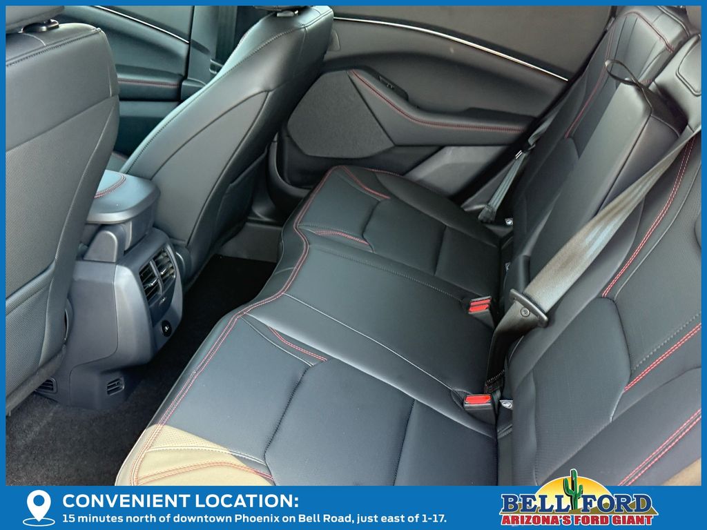 This Ford Mustang Mach-E is equipped with the following options: Equipment Group 300A Standard Package, Sport Appearance Package (Brembo Branded Front Brakes, Red Painted Front & Rear Brake Calipers, Sport Pedals, Unique Front Fascia, and Wheels: 19" Monochromatic High Gloss Black-Painted), 10 Speakers, 4-Wheel Disc Brakes, ABS brakes, Air Conditioning, Alloy wheels, AM/FM radio: SiriusXM with 360L, Apple CarPlay/Android Auto, Auto High-beam Headlights, Auto-dimming Rear-View mirror, Automatic temperature control, Brake assist, Bumpers: body-color, Compass, Delay-off headlights, Driver door bin, Driver vanity mirror, Dual front impact airbags, Dual front side impact airbags, Electronic Stability Control, Emergency communication system: 911 Assist, Exterior Parking Camera Rear, Four wheel independent suspension, Front anti-roll bar, Front Bucket Seats, Front Center Armrest, Front dual zone A/C, Front reading lights, Fully automatic headlights, Garage door transmitter, Heated door mirrors, Heated front seats, Heated steering wheel, Heated/Ventilated Perforated ActiveX Bucket Seats, Illuminated entry, Internet access capable: FordPass Connect, Knee airbag, Low tire pressure warning, Memory seat, Mobile Power Cord (120V/240V), Navigation system: Connected Navigation, Occupant sensing airbag, Outside temperature display, Overhead airbag, Overhead console, Panic alarm, Passenger door bin, Passenger vanity mirror, Power door mirrors, Power driver seat, Power Liftgate, Power passenger seat, Power steering, Power windows, Radio data system, Radio: B&O Sound System by Bang & Olufsen, Rain sensing wipers, Rear anti-roll bar, Rear seat center armrest, Rear side impact airbag, Rear window defroster, Rear window wiper, Remote keyless entry, Security system, SiriusXM w/360L, Speed control, Speed-sensing steering, Speed-Sensitive Wipers, Split folding rear seat, Spoiler, Steering wheel mounted audio controls, SYNC 4A w/Enhanced Voice Recognition, Telescoping steering wheel, Tilt steering wheel, Traction control, Trip computer, Turn signal indicator mirrors, Variably intermittent wipers, Ventilated front seats, and Wheels: 19" Bright Machined-Face Aluminum. Price includes: $4000 - Retail Customer Cash. Exp. 03/31/2026