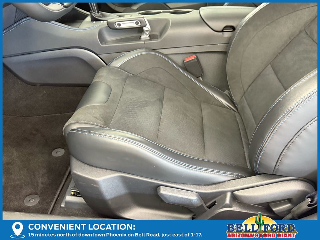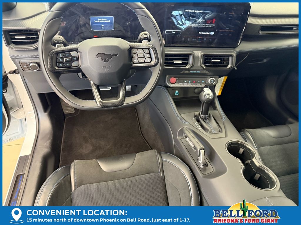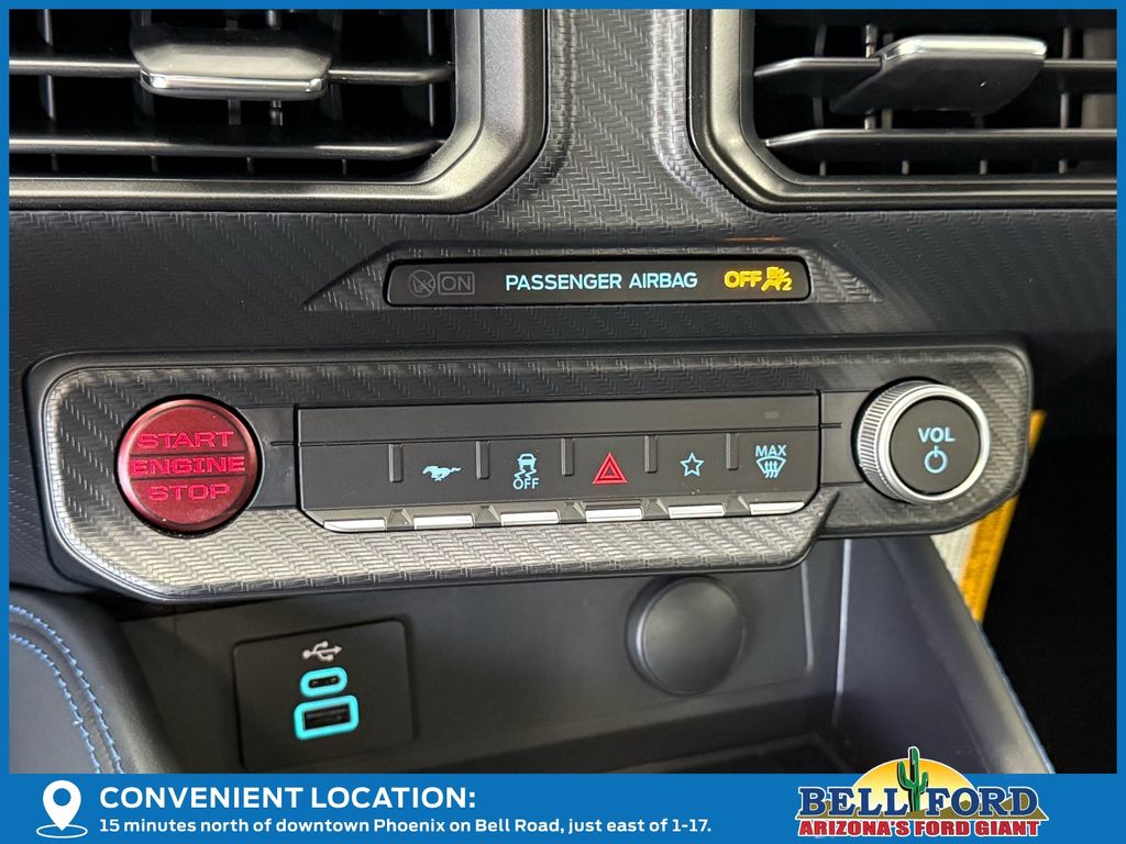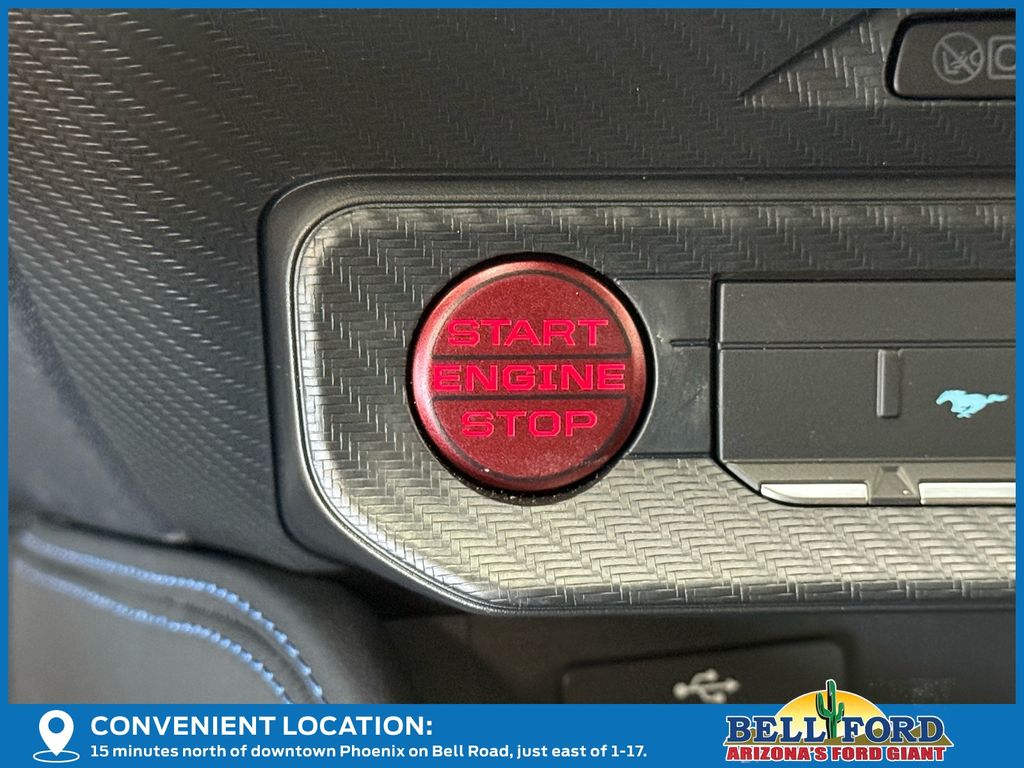 This Ford Mustang is equipped with the following options: Equipment Group 700A Deluxe Package (Aluminum Foot Pedals, Approach Detection, Cloth/Vinyl Climate-Controlled Bucket Seats, and Universal Garage Door Opener (UGDO)), RECARO Sport Seats (RECARO Micro-Suede/Vinyl Bucket Seats), Security Package (Active Anti-Theft System), 12 Speakers, 4-Wheel Disc Brakes, ABS brakes, Adaptive suspension, Air Conditioning, Alloy wheels, AM/FM radio: SiriusXM with 360L, AM/FM Stereo, Auto High-beam Headlights, Auto-dimming Rear-View mirror, Automatic temperature control, B&O Sound System by Bang & Olufsen, Brake assist, Bumpers: body-color, Cloth/Vinyl Heated Bucket Seats, Compass, Delay-off headlights, Driver door bin, Driver vanity mirror, Dual front impact airbags, Dual front side impact airbags, Electronic Stability Control, Emergency communication system: 911 Assist, Exterior Parking Camera Rear, Four wheel independent suspension, Front anti-roll bar, Front Bucket Seats, Front Center Armrest, Front dual zone A/C, Front reading lights, Fully automatic headlights, HD Radio, Heated front seats, Heated steering wheel, Illuminated entry, Knee airbag, Low tire pressure warning, Matte Clear Film, Navigation system: Connected Navigation, Occupant sensing airbag, Outside temperature display, Overhead airbag, Overhead console, Panic alarm, Passenger door bin, Passenger vanity mirror, Power door mirrors, Power driver seat, Power passenger seat, Power steering, Power windows, Radio data system, Rain sensing wipers, Rear anti-roll bar, Rear Parking Sensors, Rear window defroster, Remote keyless entry, Remote Start System, SiriusXM w/360L, Speed control, Speed-sensing steering, Speed-Sensitive Wipers, Split folding rear seat, Spoiler, Sport steering wheel, Steering wheel mounted audio controls, Storage Cooler Bag (DIO), SYNC 4, Tachometer, Telescoping steering wheel, Tilt steering wheel, Traction control, Trip computer, Variably intermittent wipers, Voltmeter, and Wheels: 19" x 9.5" Fr & 19" x 10" Rr Aluminum. Price includes: $3500 - Retail Customer Cash. Exp. 03/31/2026